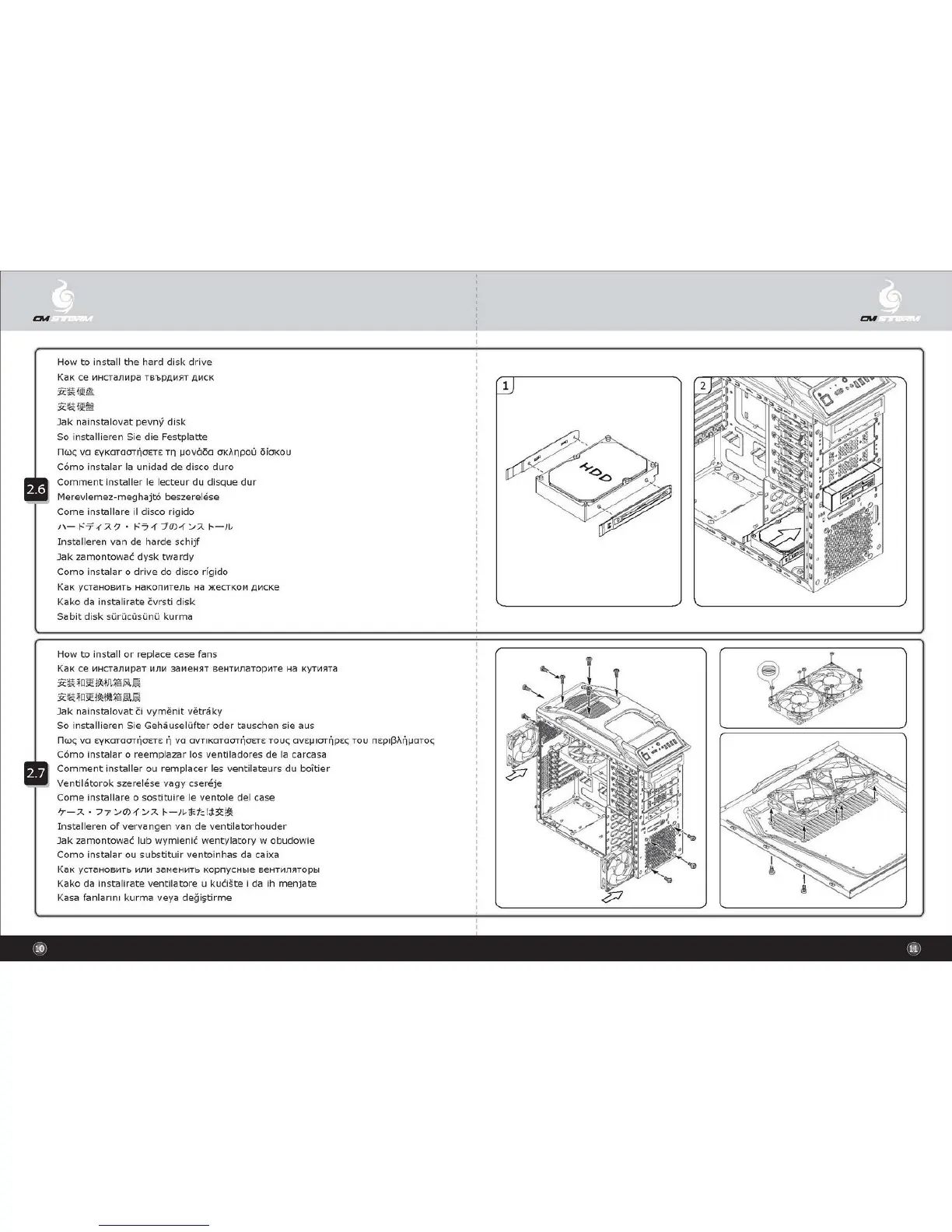 Cooler Master Scout - How to Install the Hard Disk Drive; How to Install or Replace Case Fans