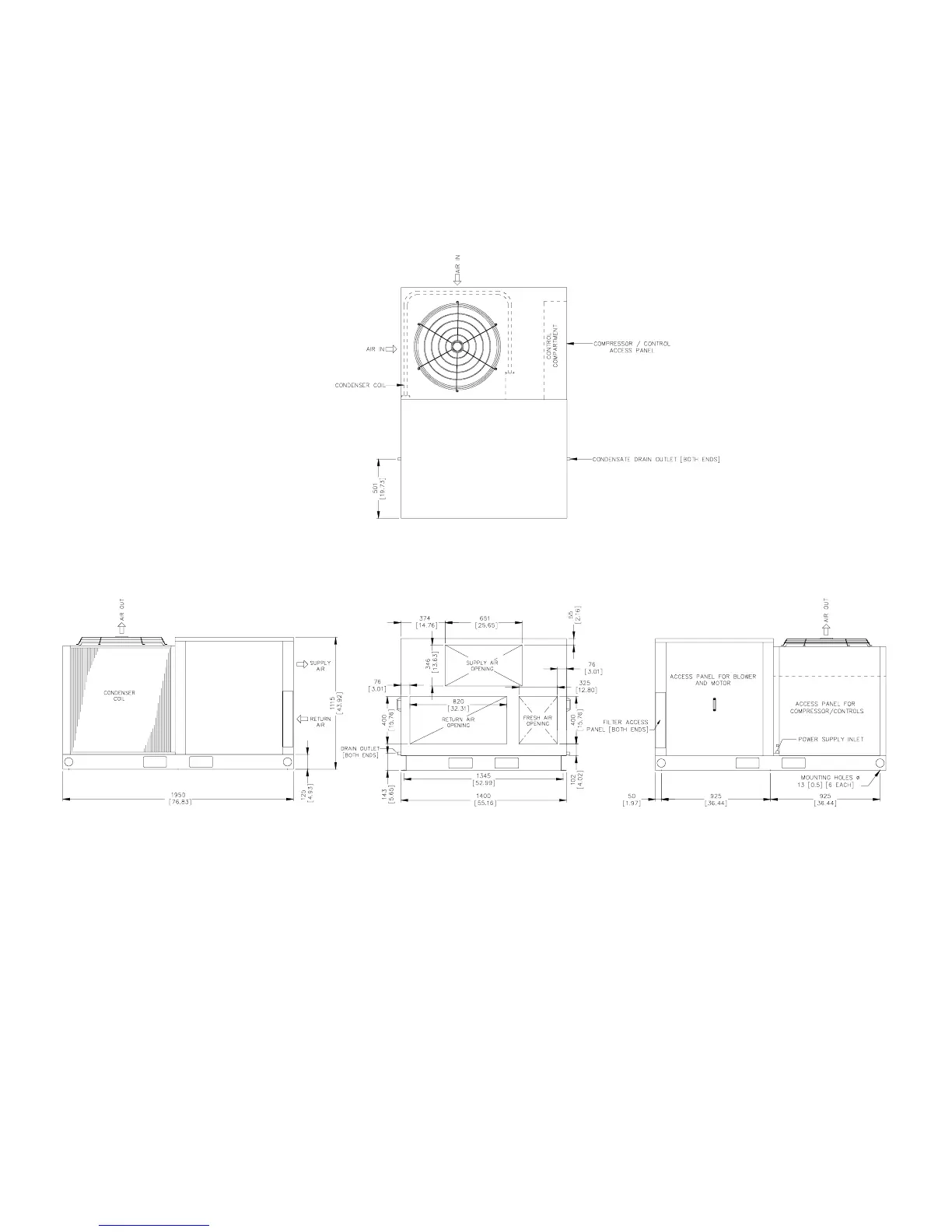 2. Service clearance should be 1200mm (4 feet) on all sides.