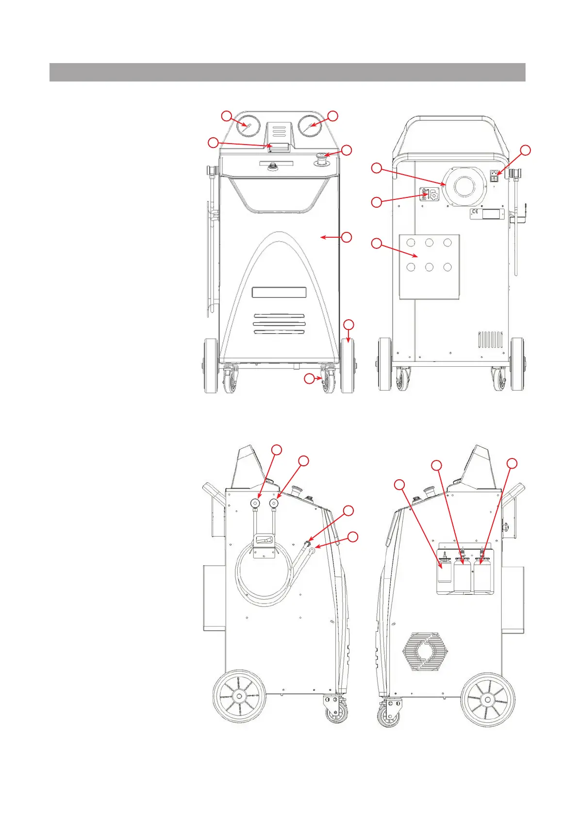 COOLIUS Y10 - Machine Components Overview; Front and Rear Machine Views; Left and Right Machine Views