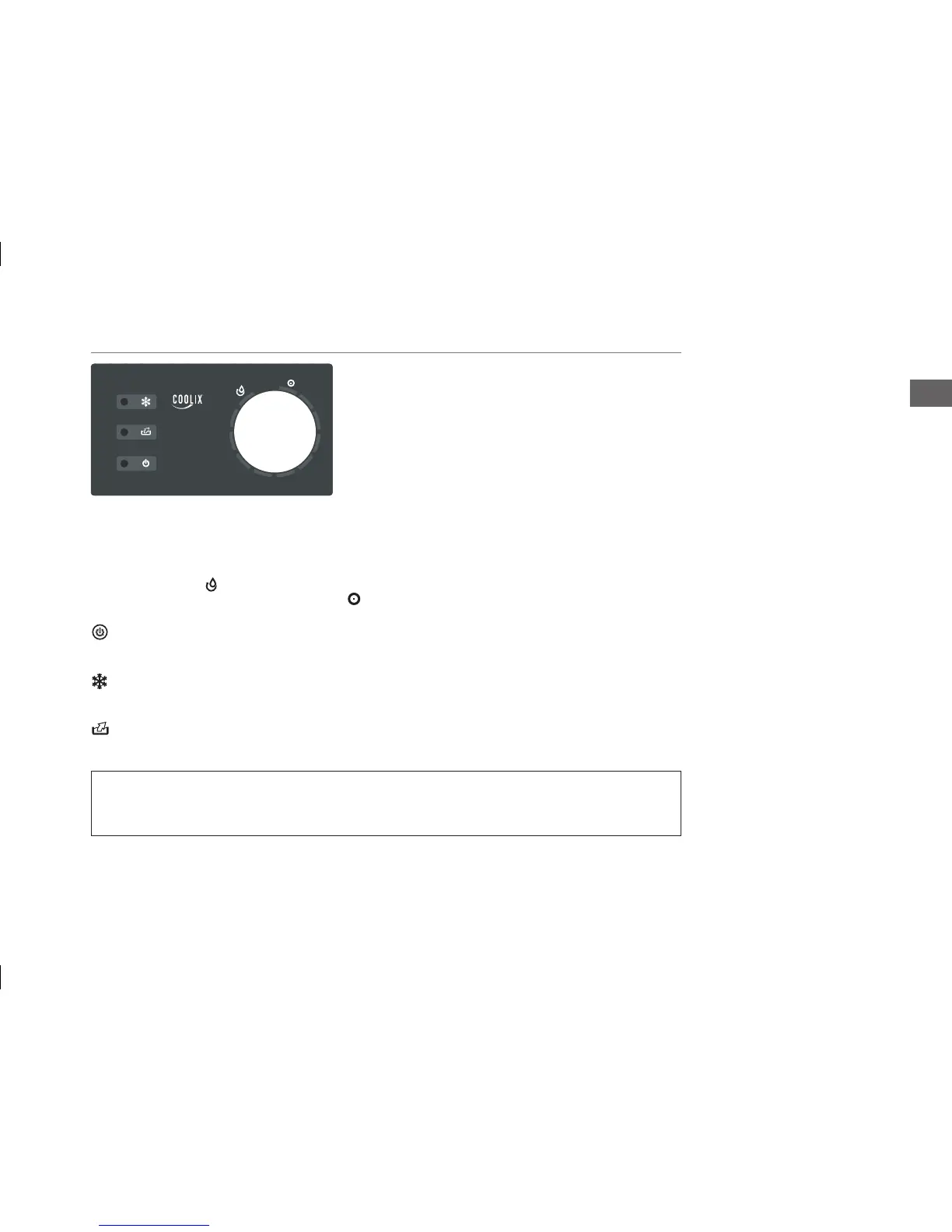 Indicator lamp: This display illuminates when ice forms on the evaporation coils, the compressor switches off and the