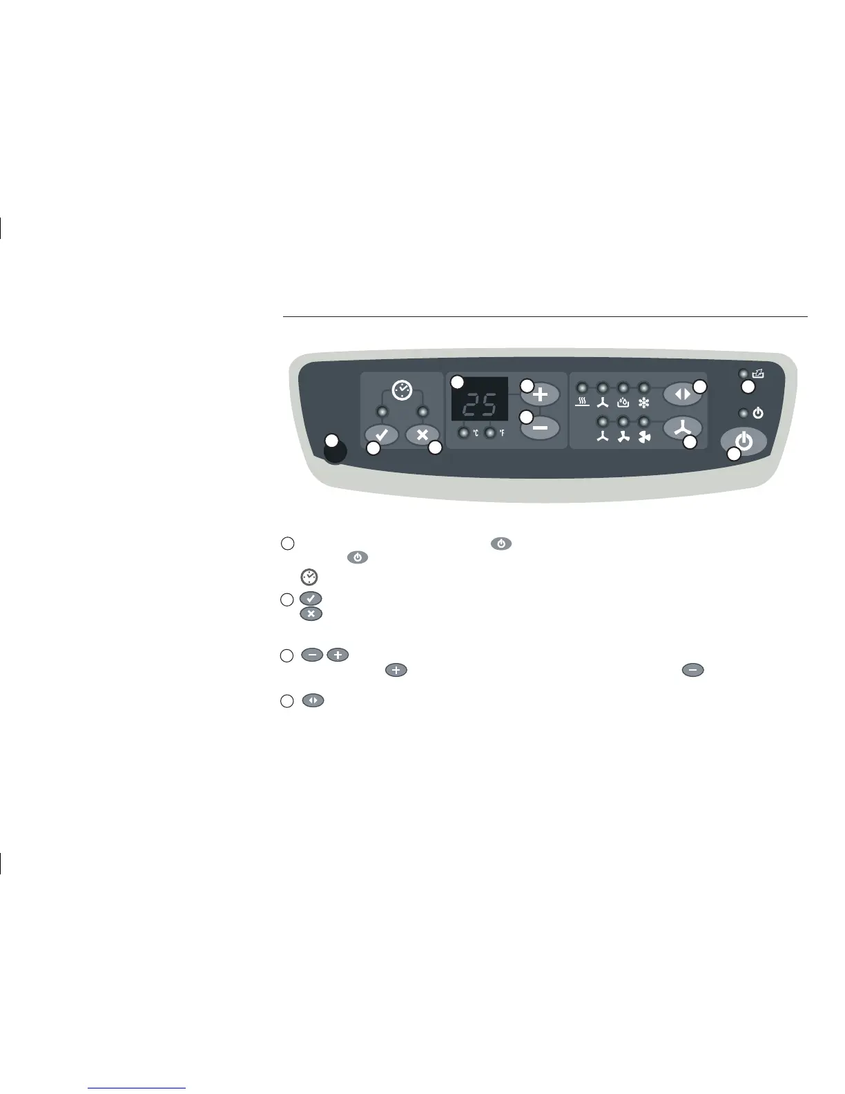 The currently set mode can be identified from the control light that is illuminated next to the symbol. The Heat mode is