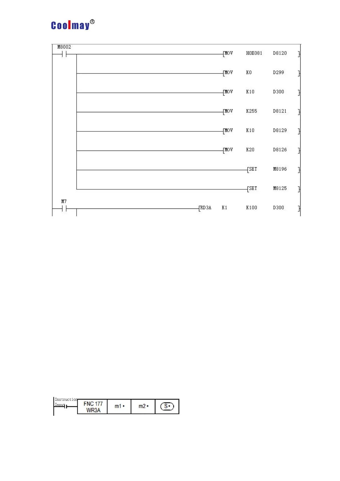 This program represents that 10 data of the registers D100-D109 in the PLC with the