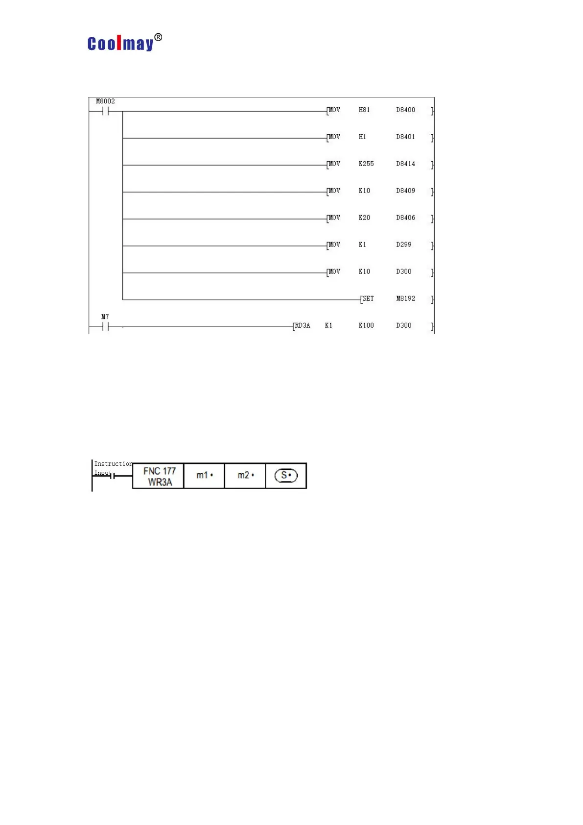 For CoolMay PLC, the WR3A instruction corresponds to Modbus's 06 and 10