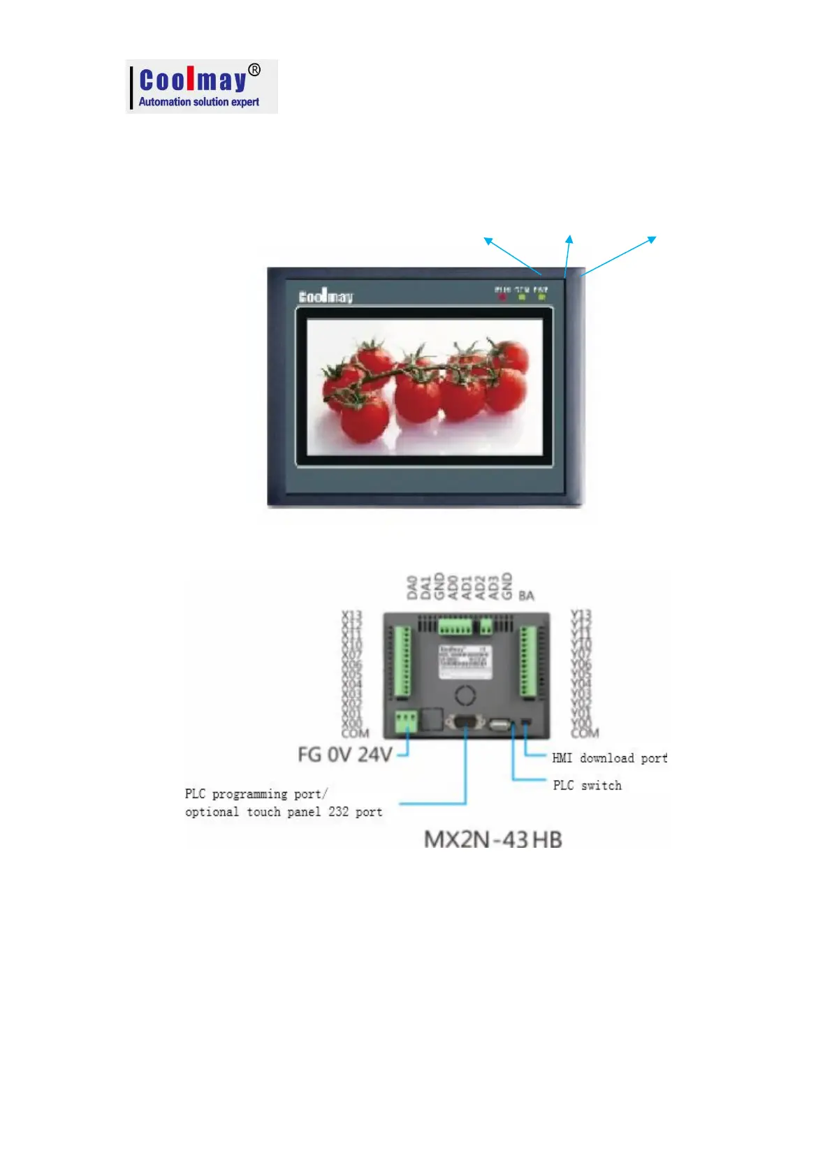 Coolmay MX2N Series - 1.3 Hardware Description; 1.3.1 MX2 N-43 HB Structure and Dimension