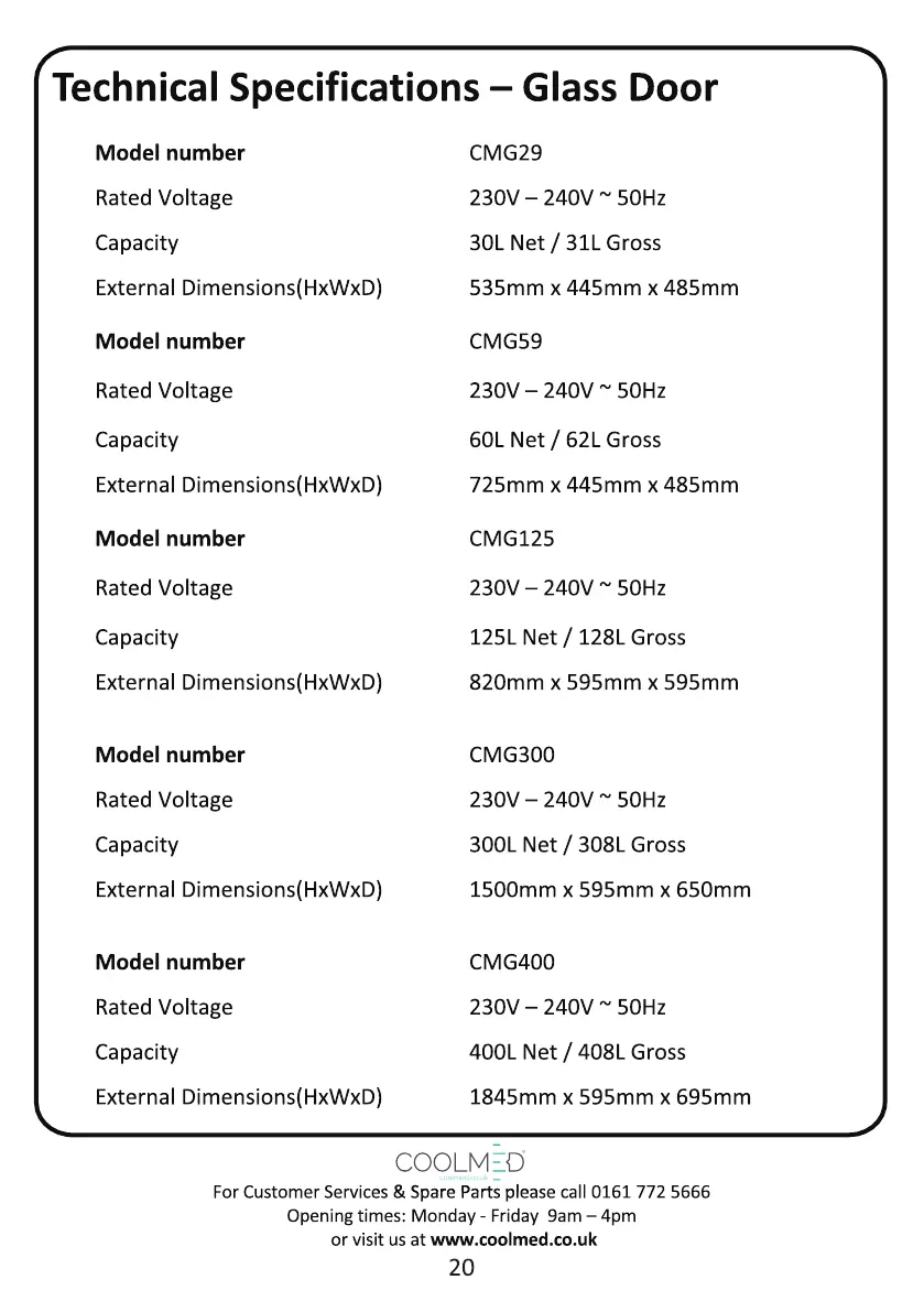Coolmed CMS29 - Technical Specifications - Glass Door