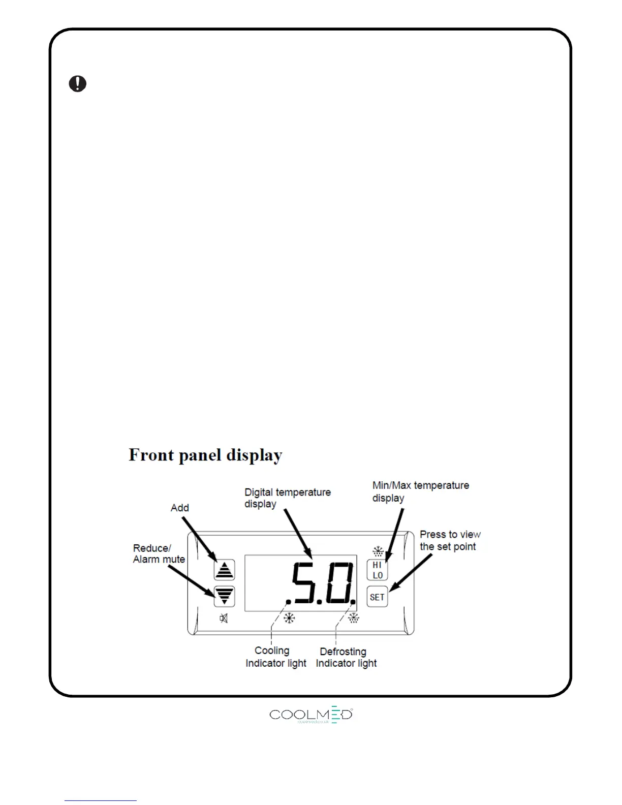 reaches 8 Degrees Celsius or alternatively the alarm can be stopped by pressing