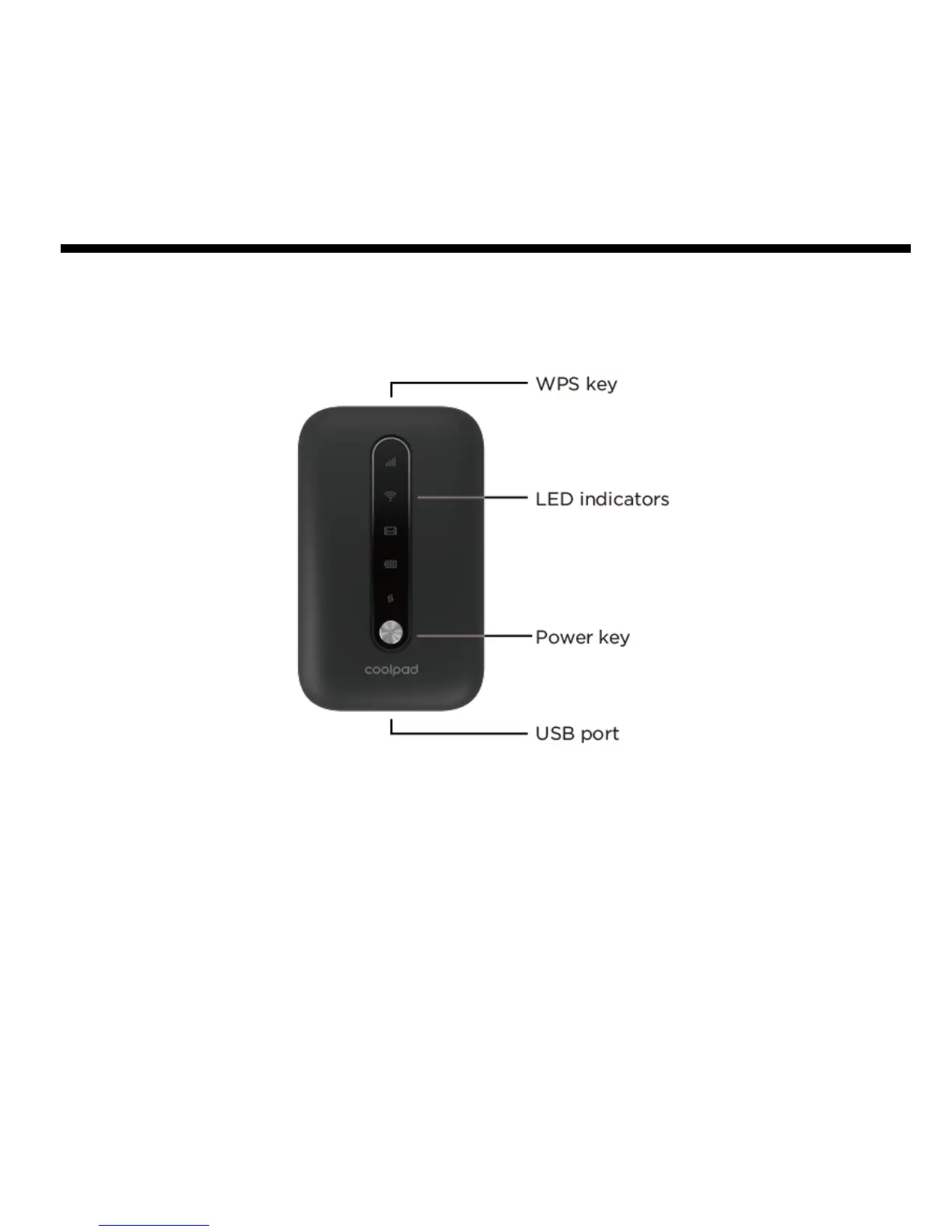• LED indicators: Display network signal, Wi-Fi, SMS, battery charge and mobile data