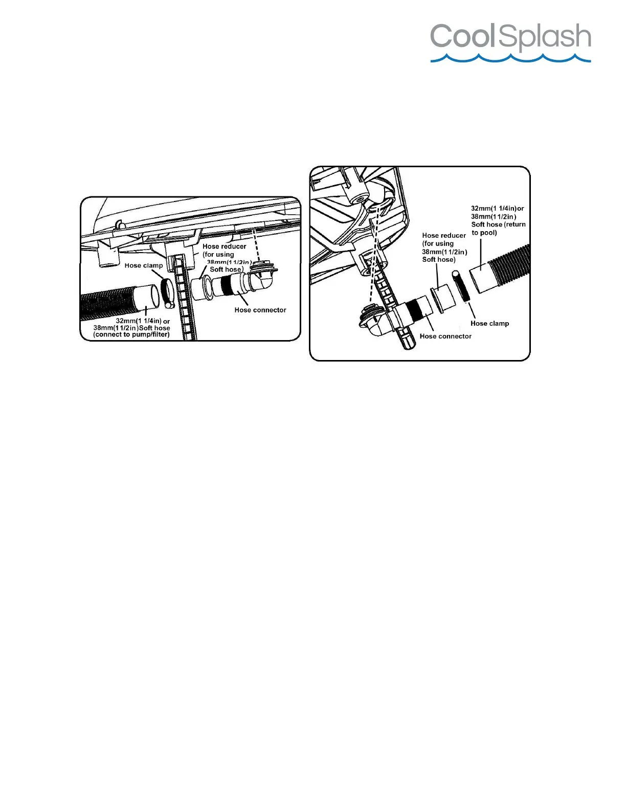 2) For pools using hose connection of Dia. 57mm (2 1/4in) soft hose with