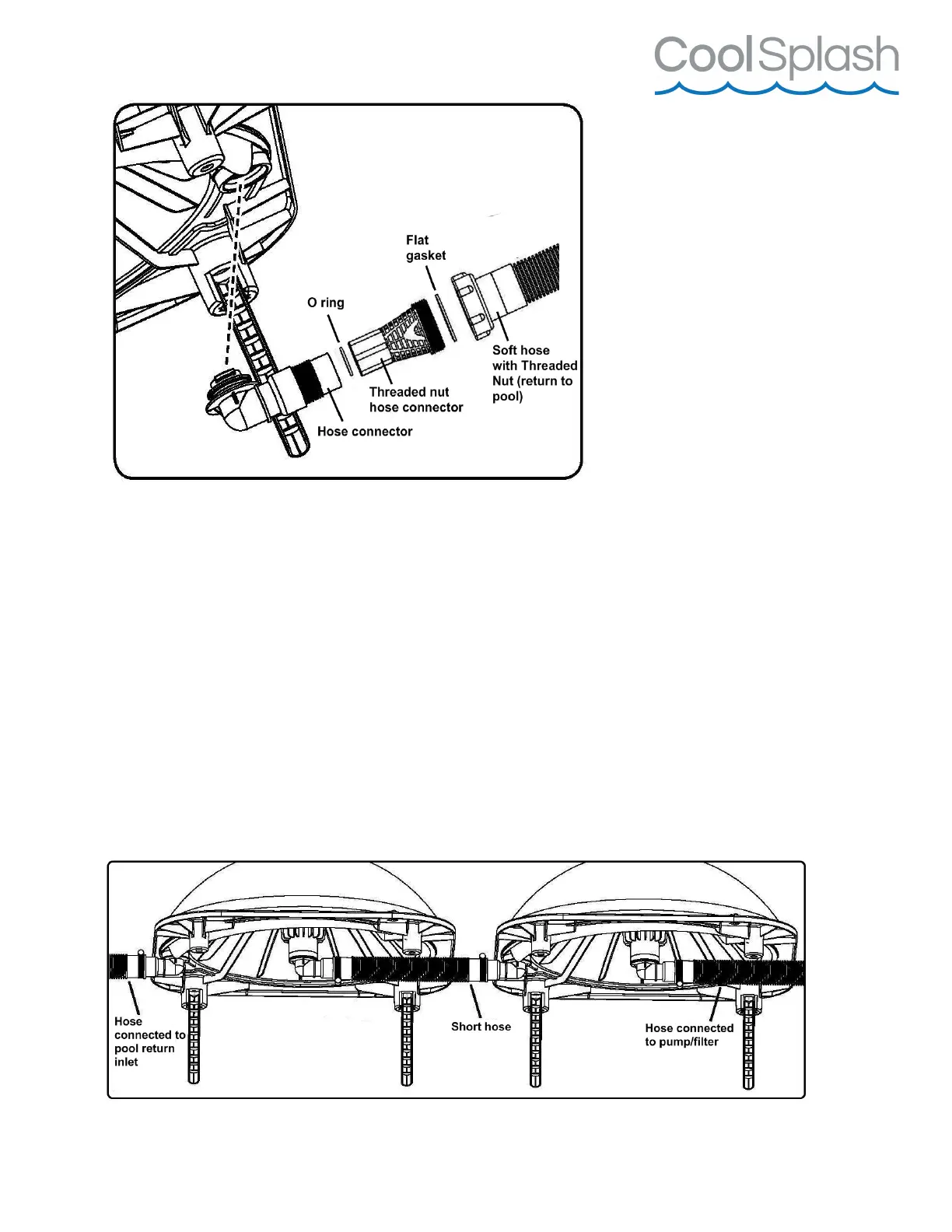 For one additional solar heater, use short hose provided and hose reducer to connect