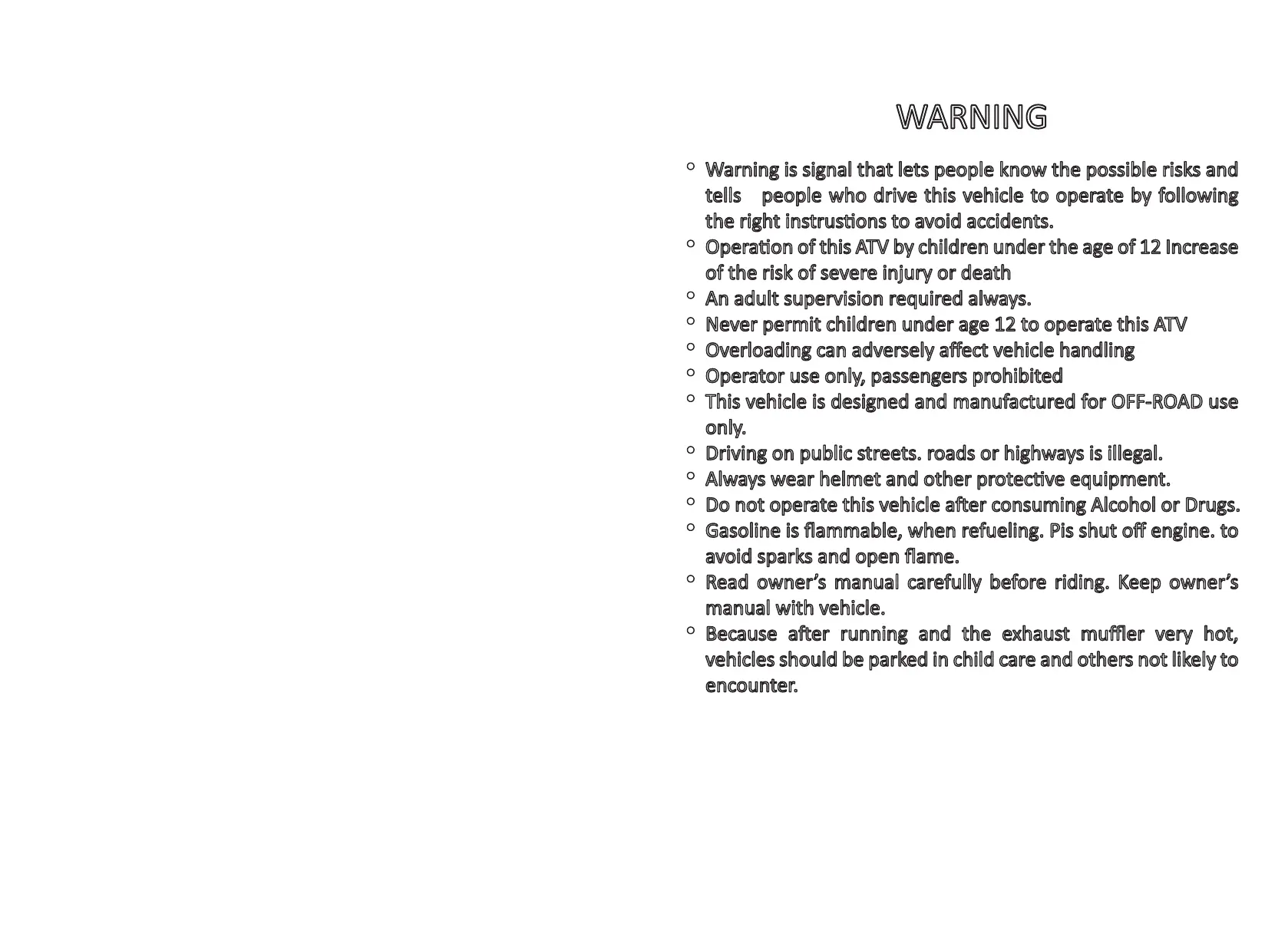 Never permit children under age 12 to operate this ATV