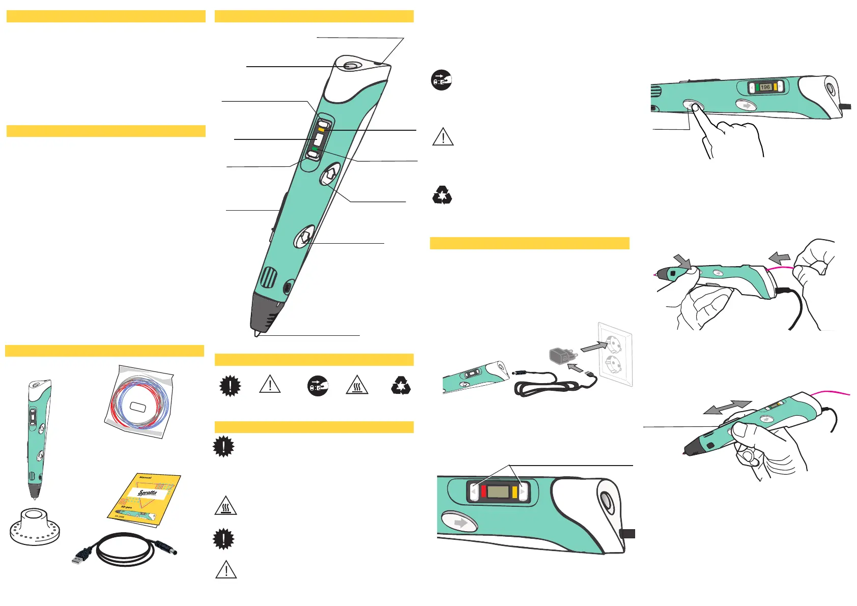 på Spralla 3D-pennen. Den gule LED «På»-