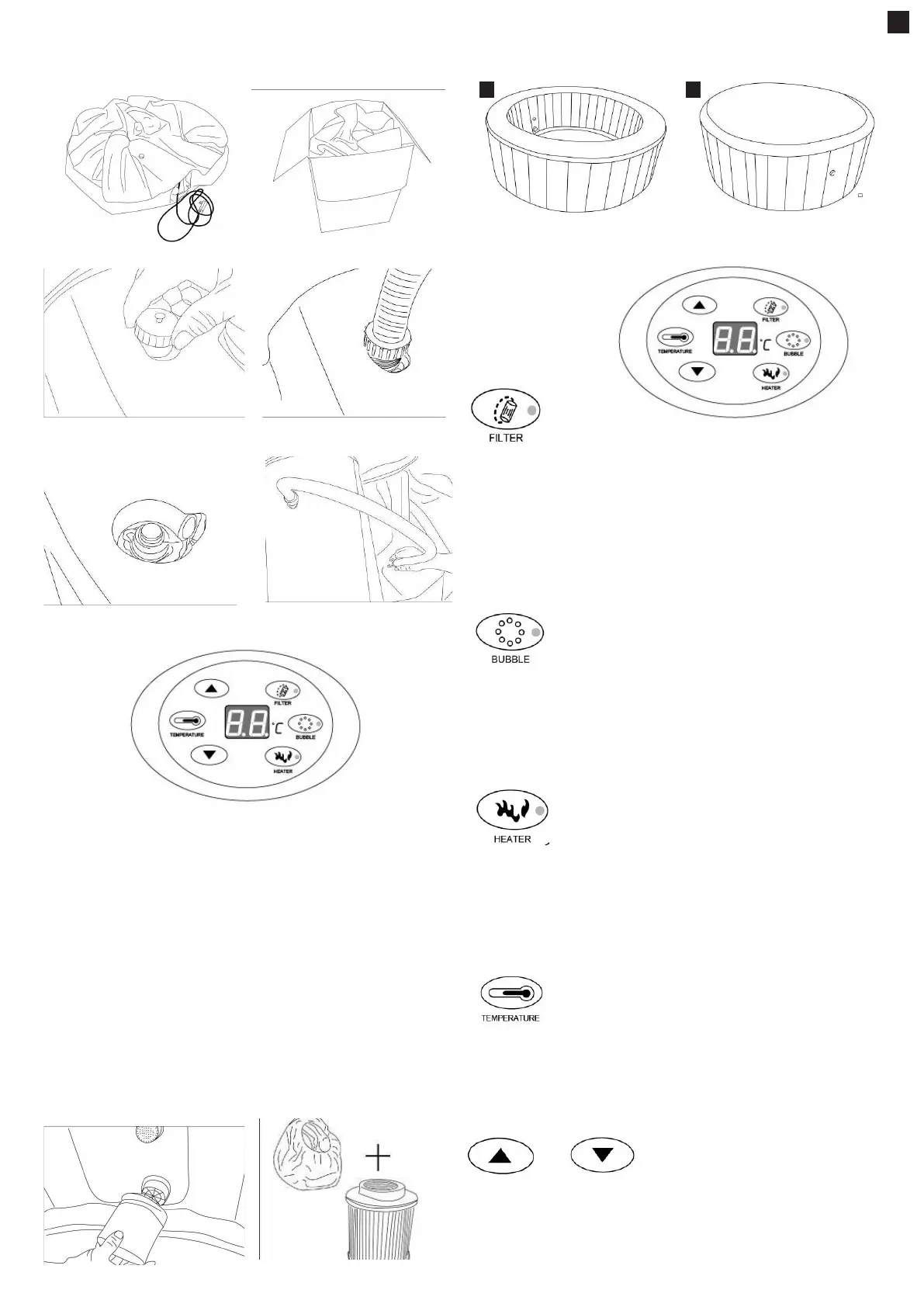 sä, suodatinpumppu aloittaa toimintansa. Kun asetettu lämpötila on saavutettu, lämmitys-