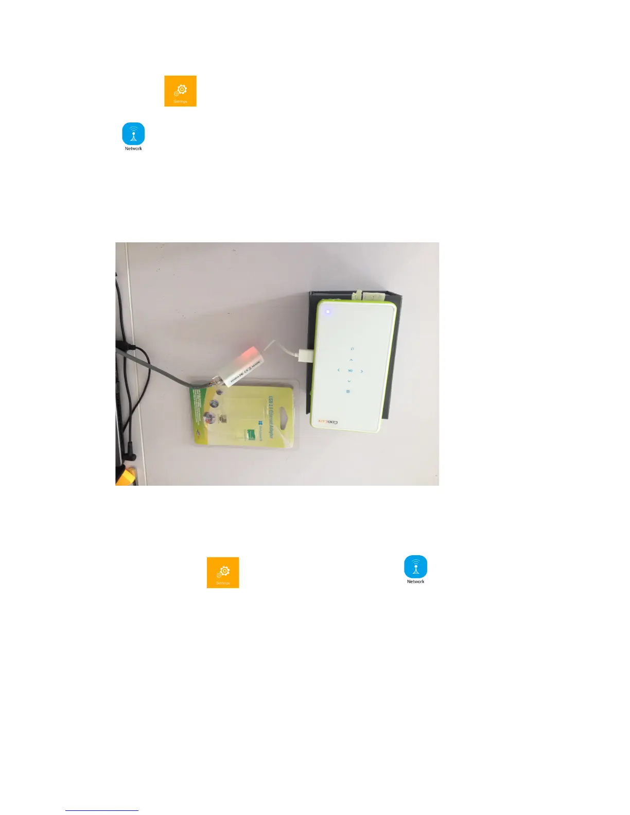 Click the (WIFI) icon on the second page, then select the Network Setting