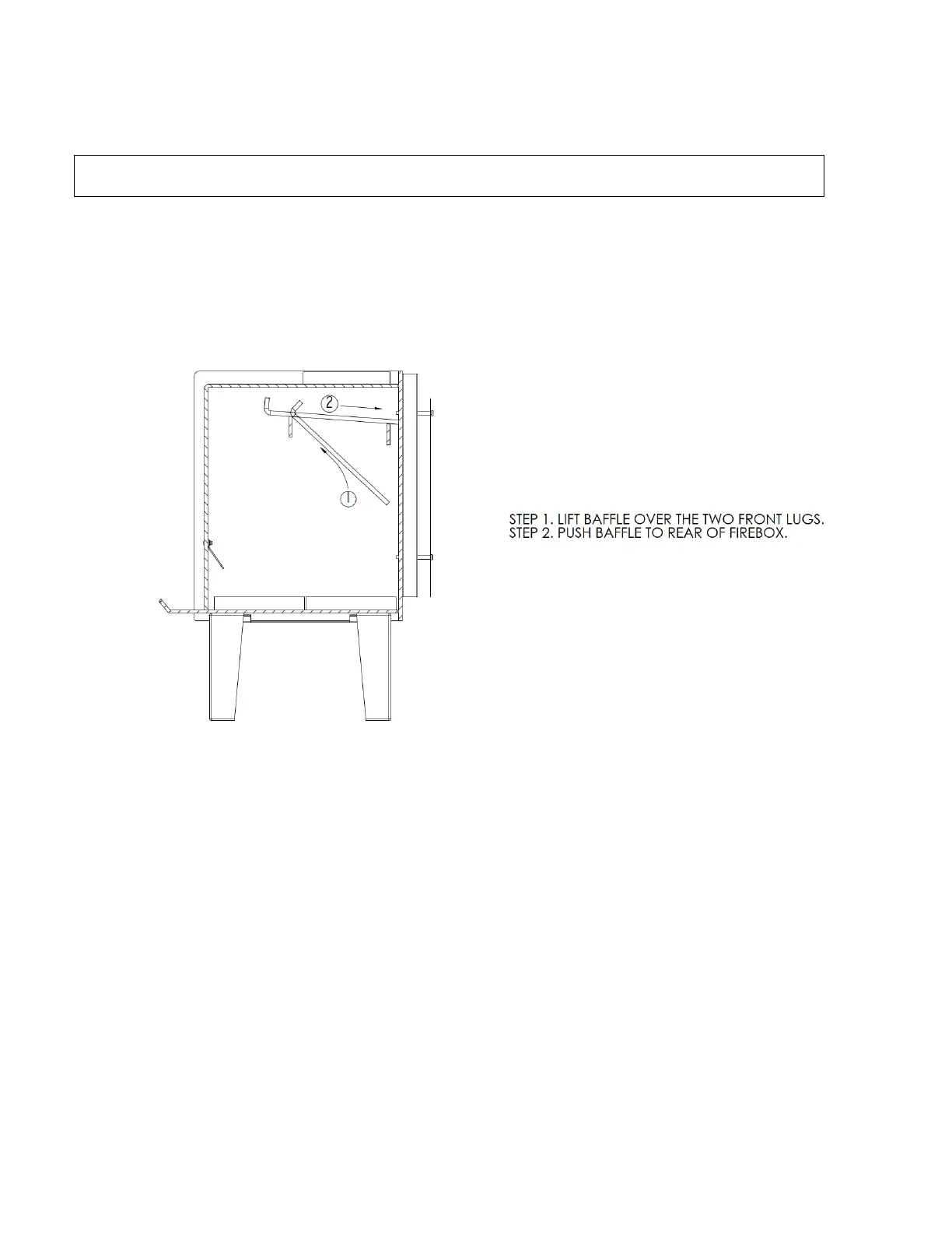The baffle plate is held in place with four locating tabs – 2 either side, front and rear of the firebox.
