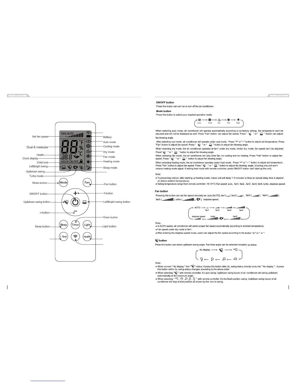 Cooper & Hunter CH-S09FTXN-E2wf - Function and Control; Remote Control Operations