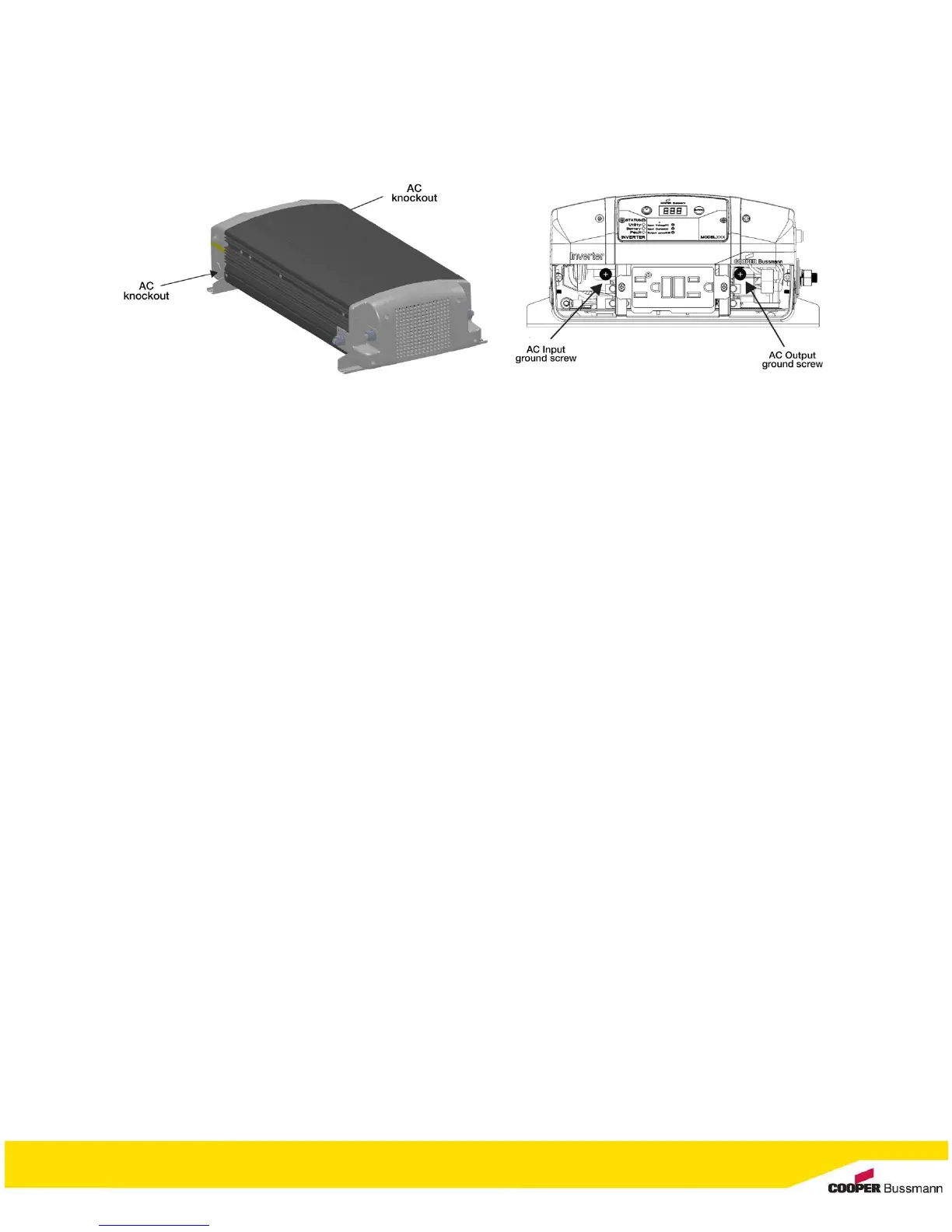 The knockouts for AC input and output hardwiring are located on the front sidewalls. Make sure