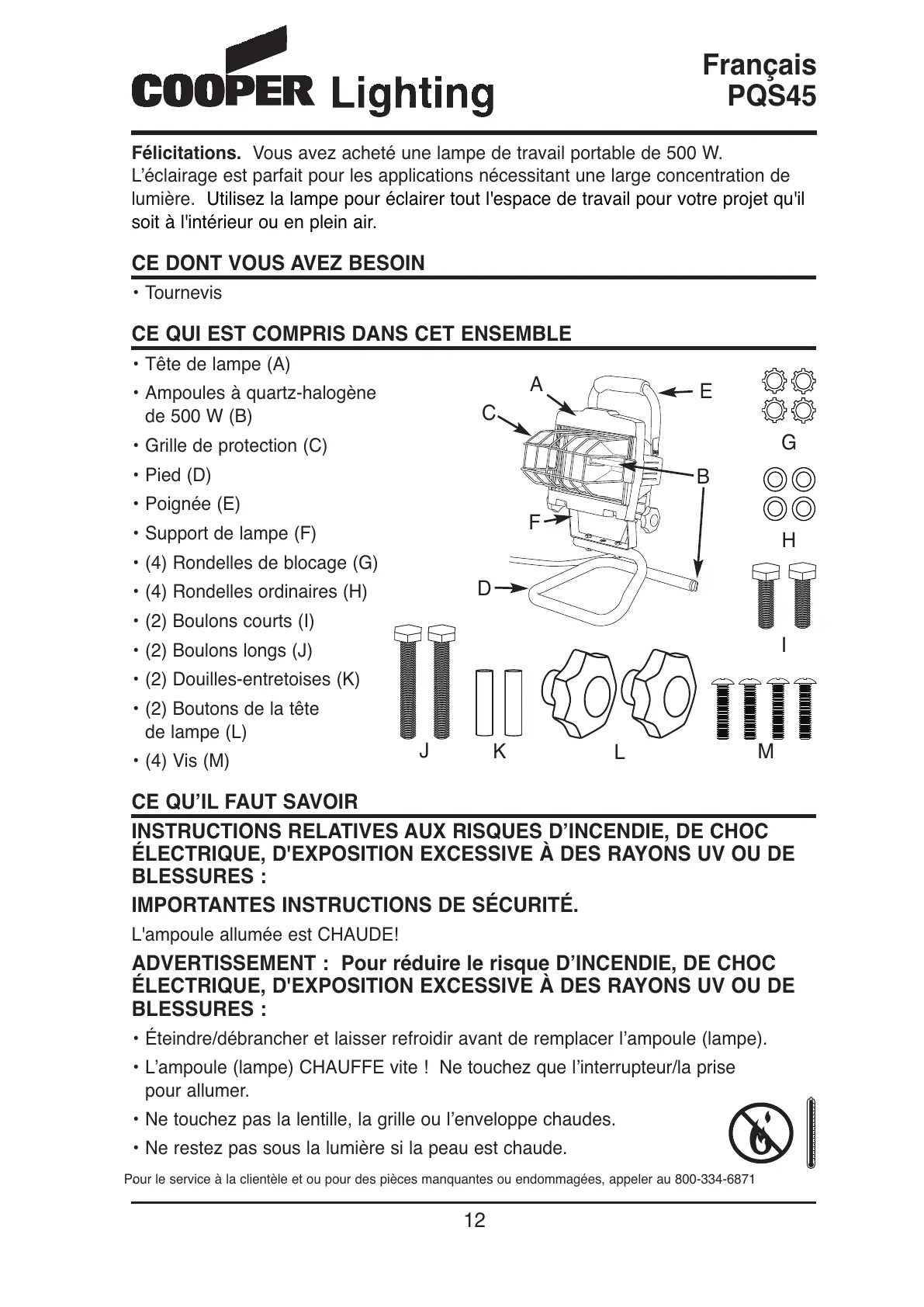 Félicitations. Vous avez acheté une lampe de travail portable de 500 W.