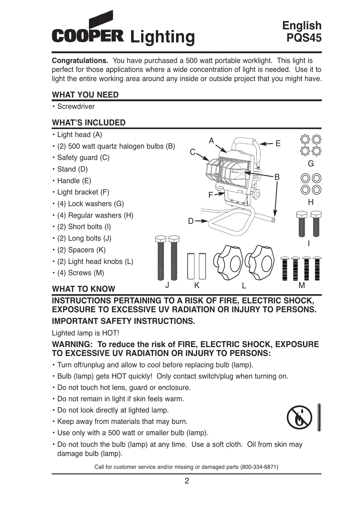 Congratulations. You have purchased a 500 watt portable worklight. This light is