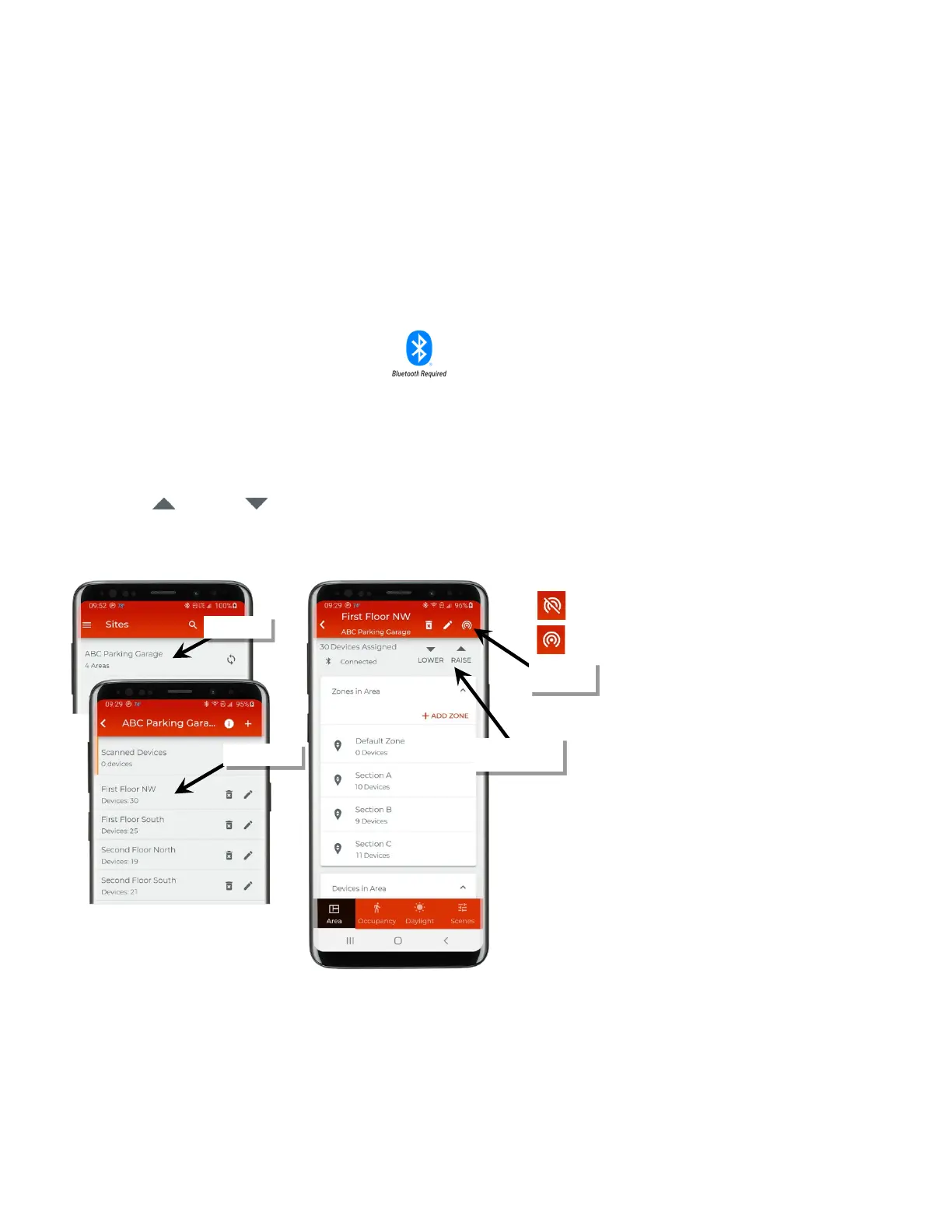 The site administrator can use the WaveLinx Lite Mobile Application to issue real-time lighting commands and view details and status. This