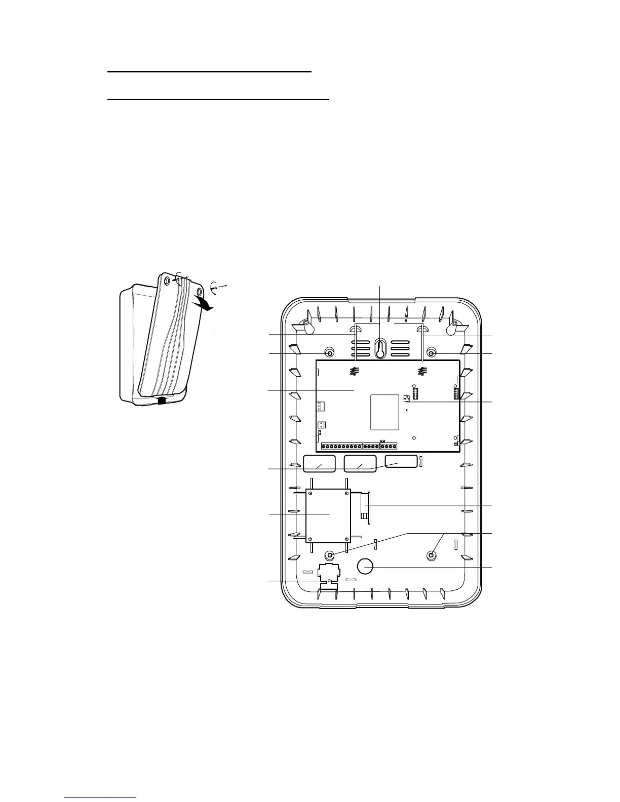 5. Cable entry holes for pcb. 10. Connector pins for Lid Tamper.