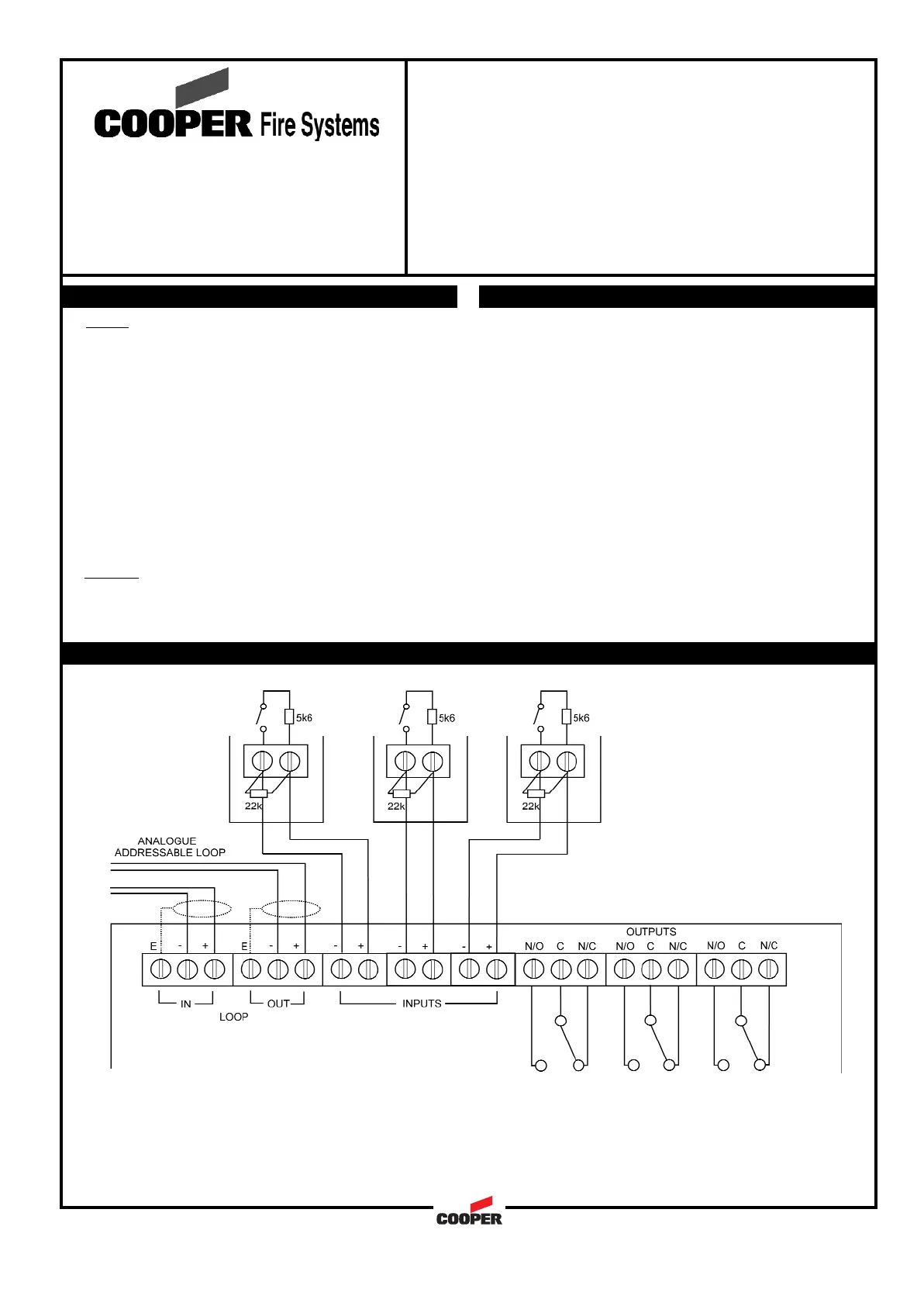 2. The end of line resistor must always be fitted, even if inputs are not used.