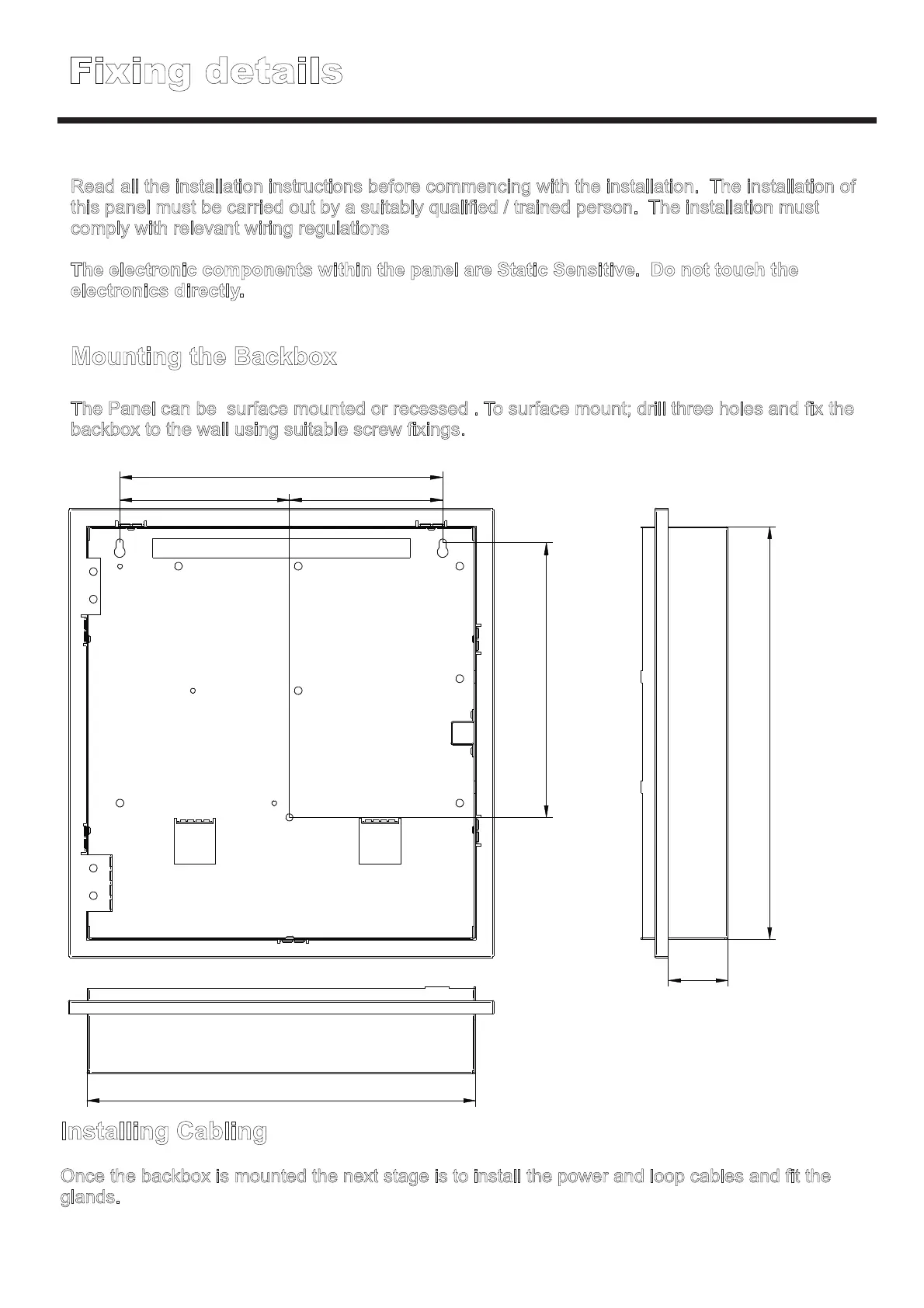 Once the backbox is mounted the next stage is to install the power and loop cables and fit the