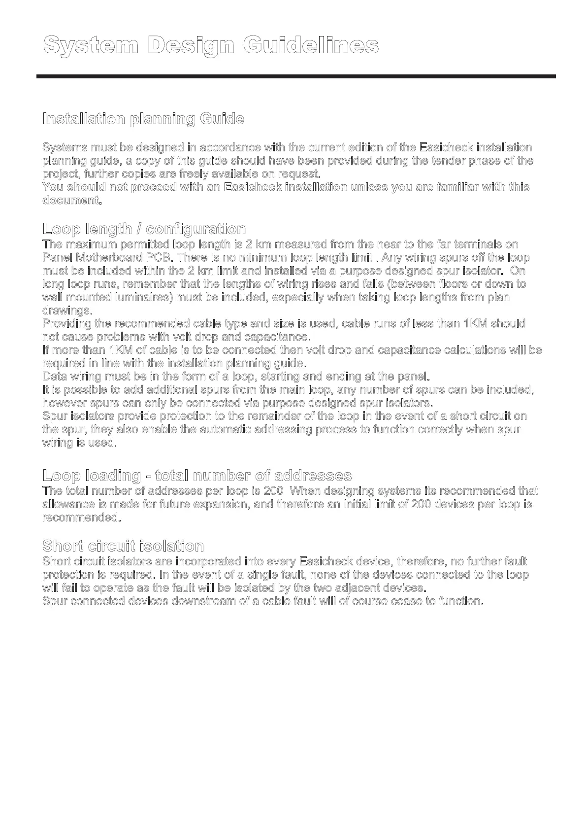 Systems must be designed in accordance with the current edition of the Easicheck installation