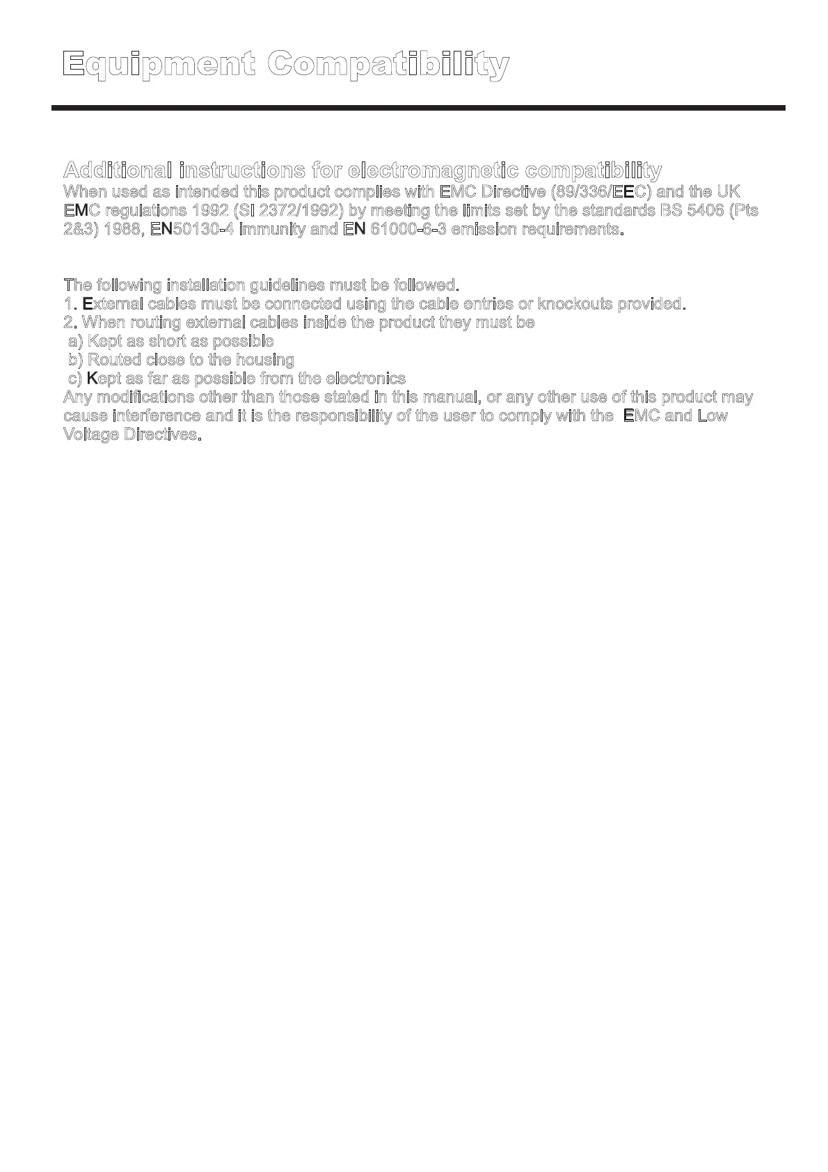When used as intended this product complies with EMC Directive (89/336/EEC) and the UK