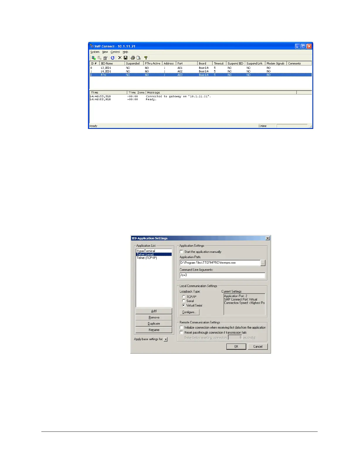 The IED Application Settings dialog box appears.