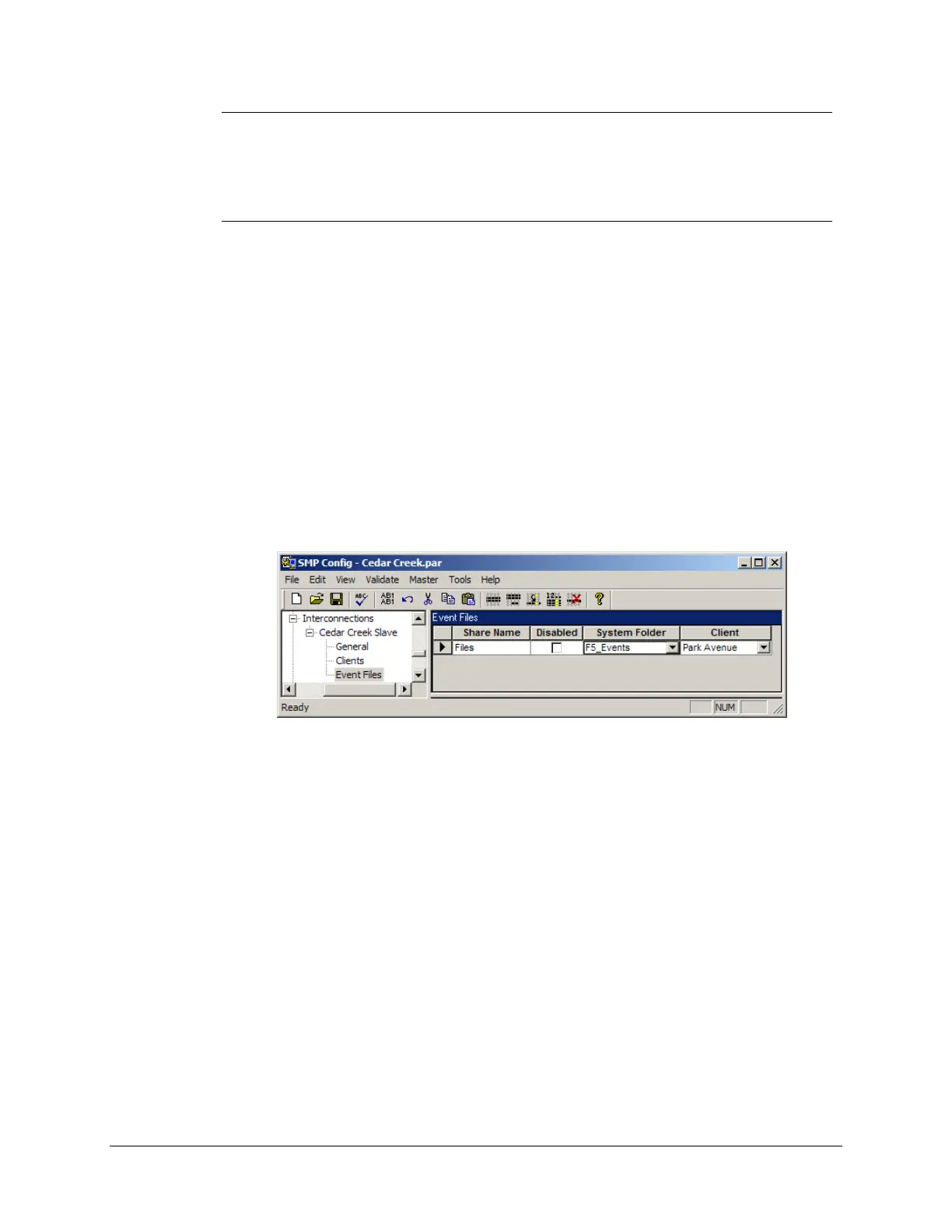 Select the SMP Gateway that will provide the event files (the slave SMP Gateway).