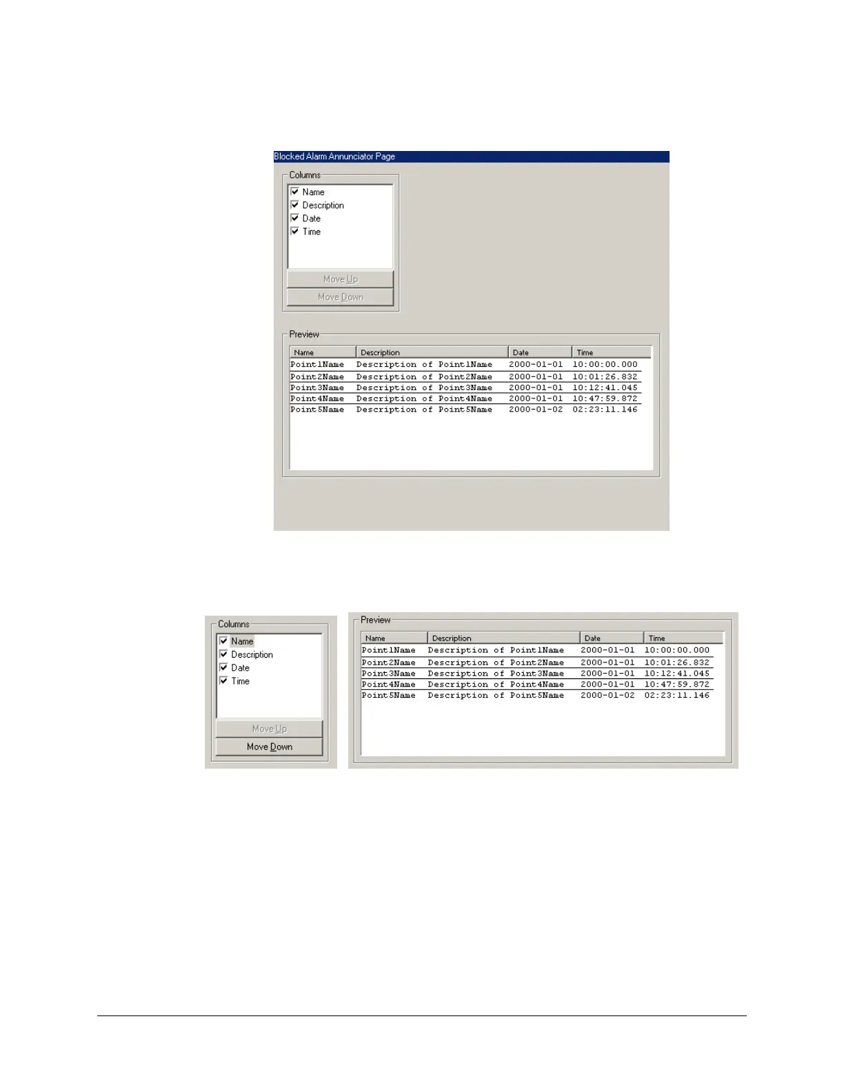 and availability state, like for the Alarms page (see “Setting Up the Alarms Page”, above).