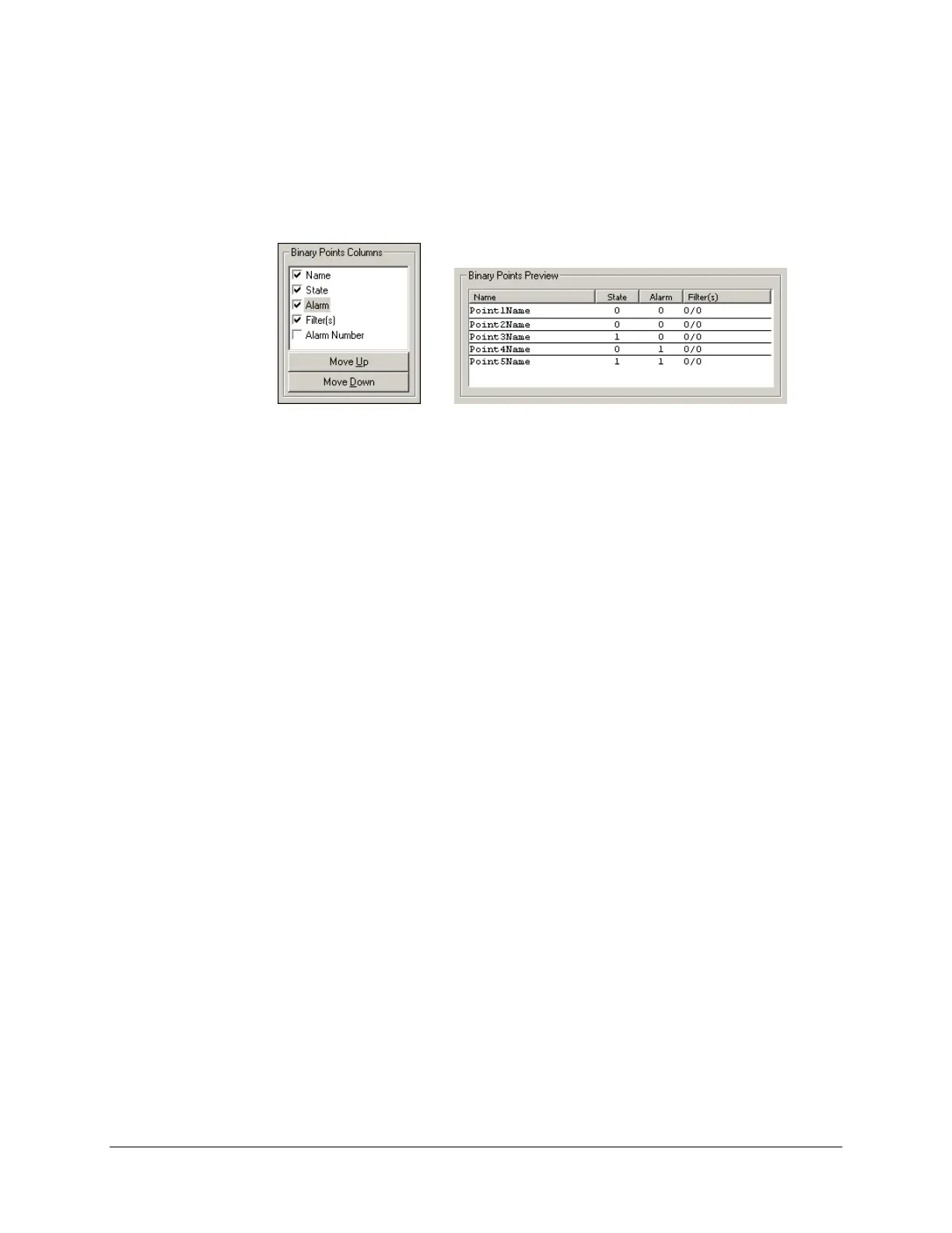 inputs/outputs lists. You can see the result of your selection under Binary Points Preview.