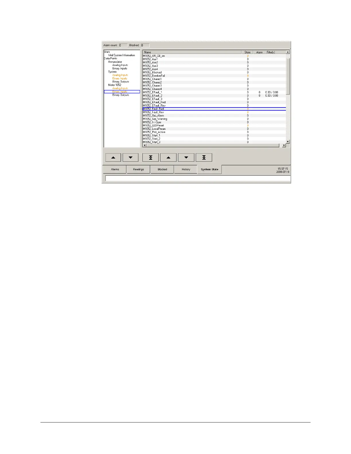 alarm, and how long, in milliseconds, the binary input must keep the inactive state (FALSE or