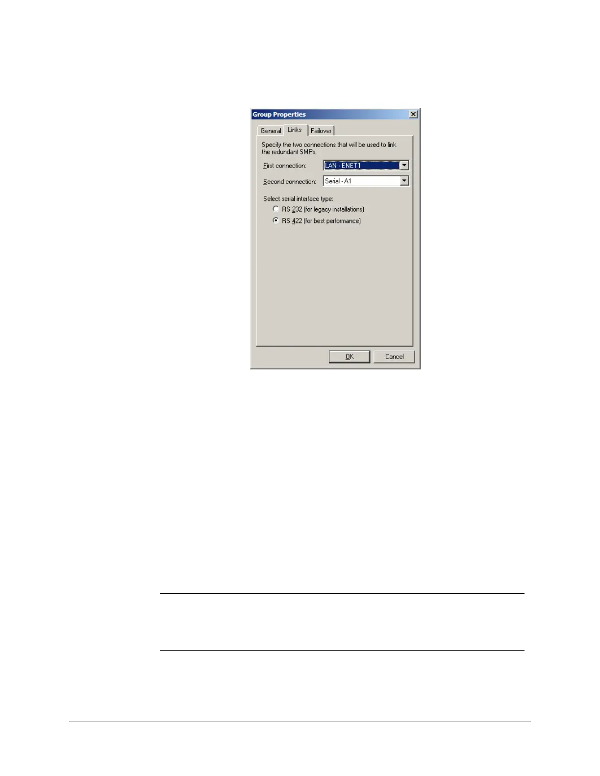 The Links tab is used to specify the 2 connections that will be used to link the redundant