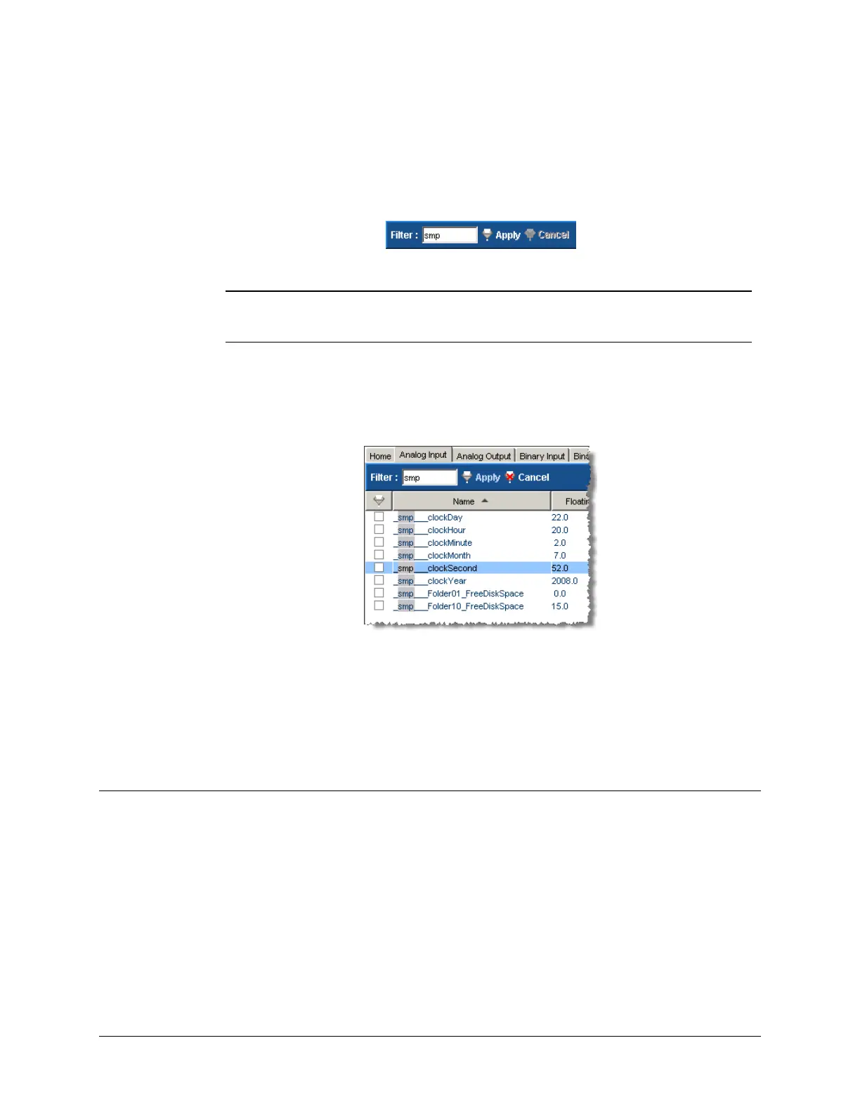 data points that contain the words “smp” and “clock” will be displayed; others