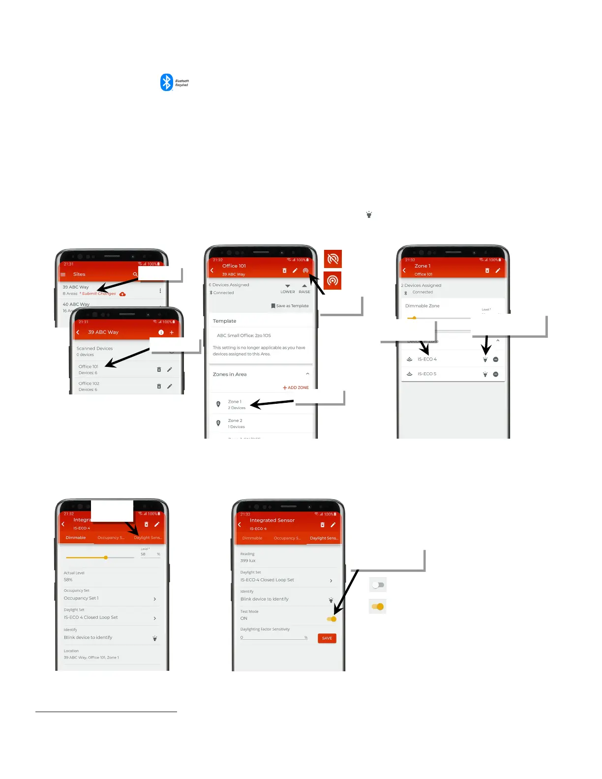 1: Bring the mobile device within range (within 60 feet) of any line voltage powered provisioned WaveLinx Lite device in the desired area.