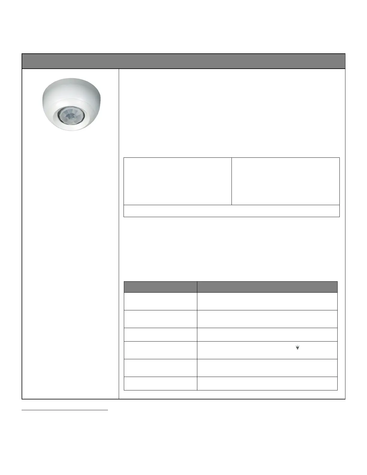 • LED flashes white (in sensor window) for 500ms then blue for 500ms once every 3 seconds when motion is detected.