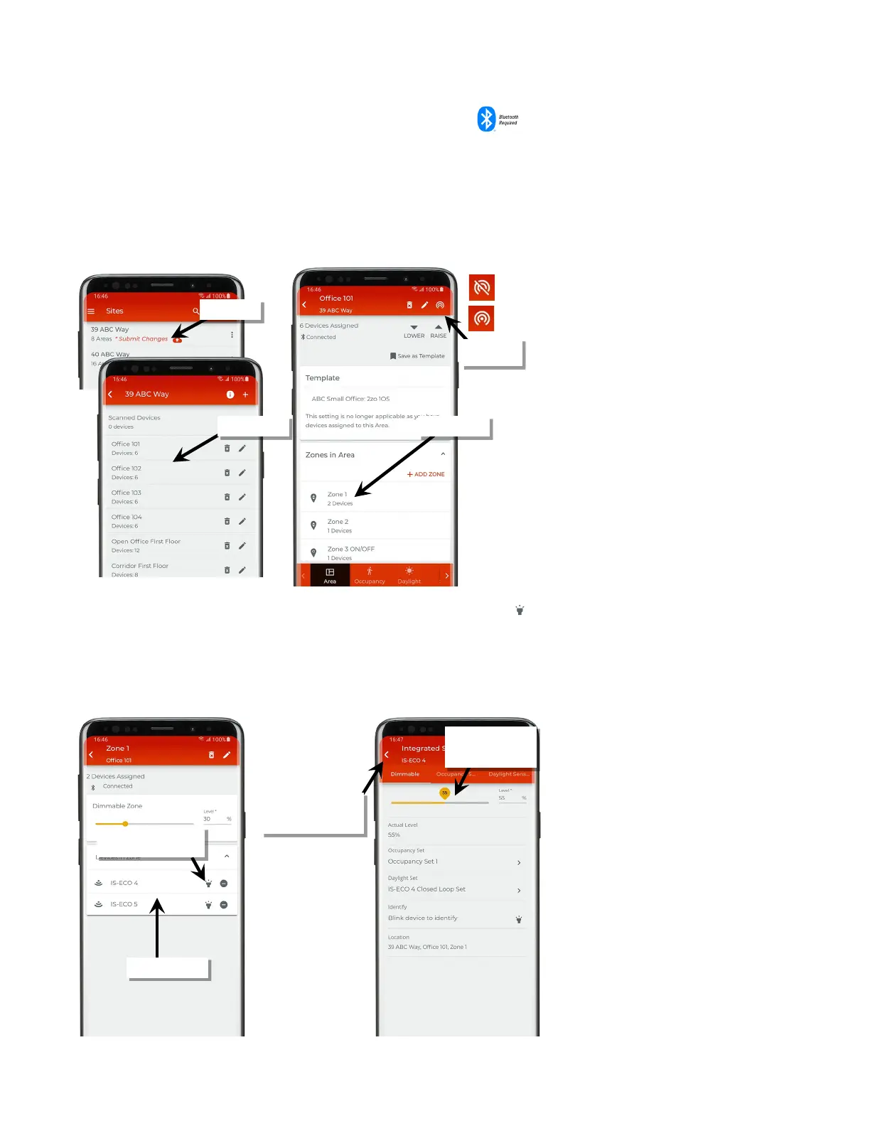 1: Bring the mobile device within range (within 60 feet) of any line voltage powered provisioned WaveLinx Lite device in the desired area.