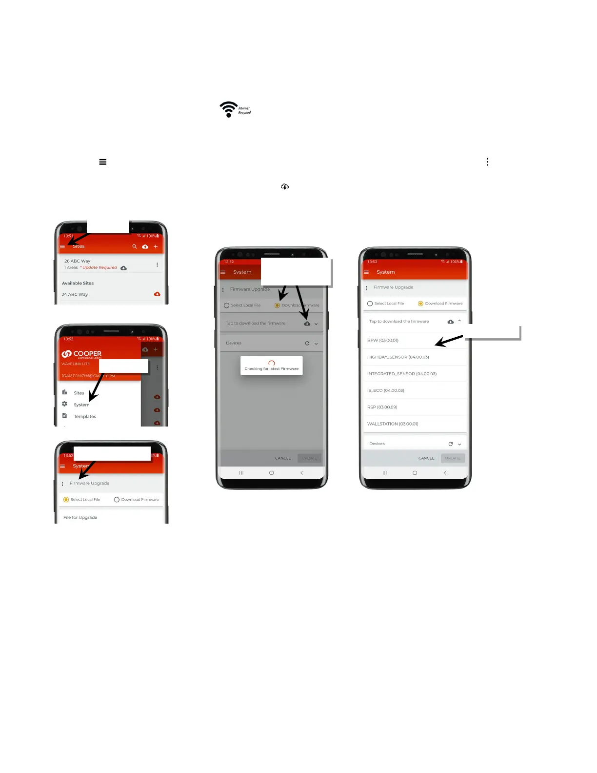2: Tap the menu ‘ ’, and then select ‘System’. If not already showing the ‘Firmware Upgrade’ screen, select the more icon ’ ’ and then tap