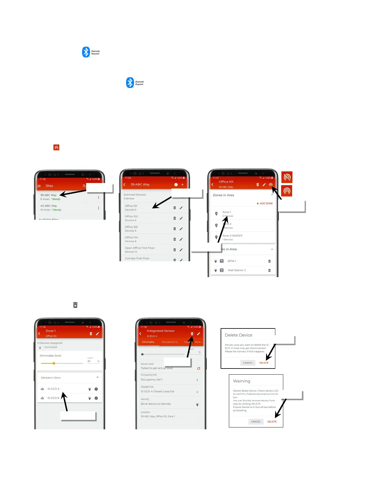 1: Bring the mobile device within range (within 60 feet) of any line voltage powered provisioned WaveLinx Lite device in the desired area.
