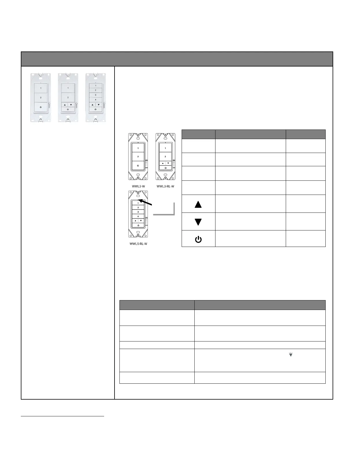 • WWL5-RL: 5 Button with Raise/Lower