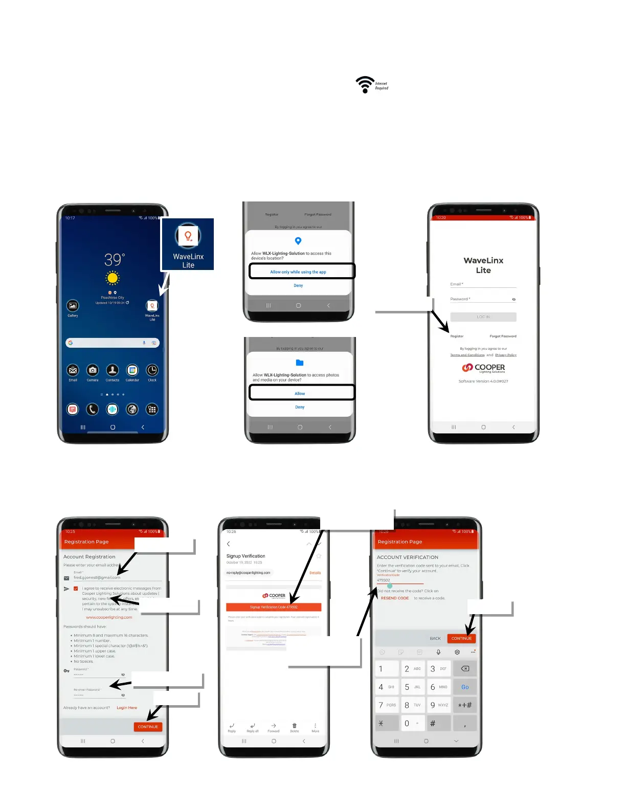 Registration for an account is required before using the WaveLinx Lite Mobile Application. Once registered, the user will login to the mobile