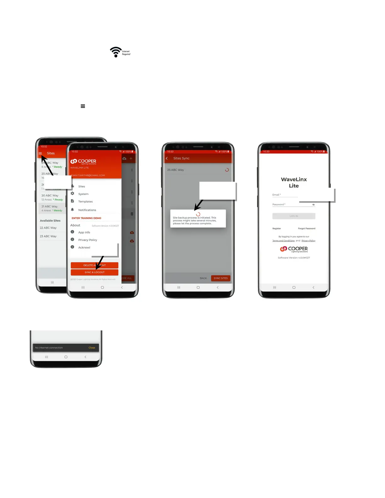 connection to sync site data to the cloud portal during the logout process. If there is no internet connection, logout will be prevented, and the following