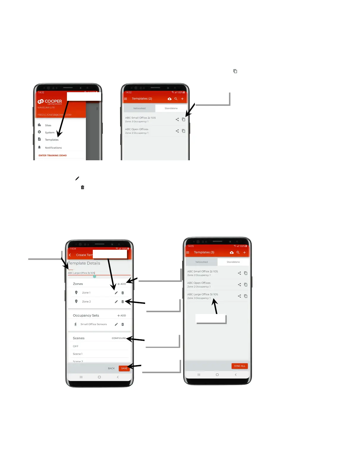 • Tap the delete icons ‘ ’ to delete zones or occupancy sets.