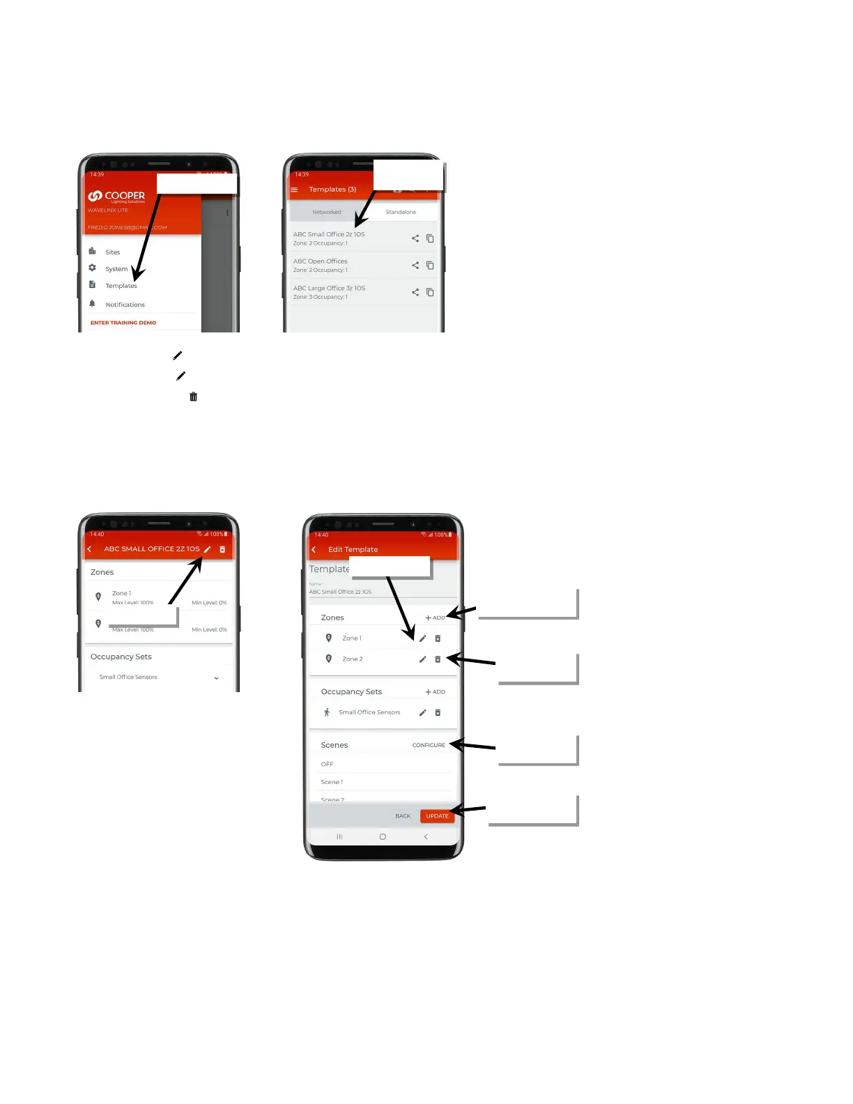 • Tap the delete icons ‘ ’ to delete zones or occupancy sets.