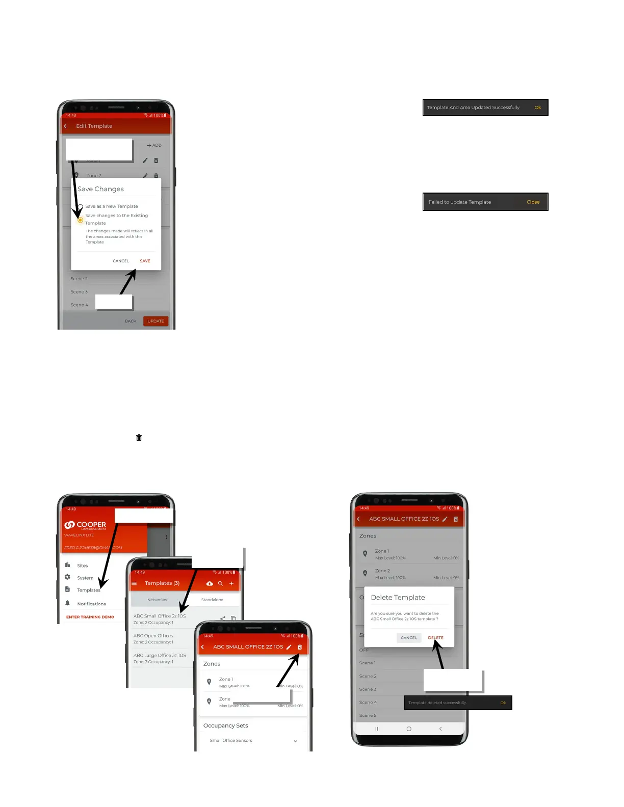 6: At the prompt, select the option to ‘Save Changes to Existing Template’ and then tap ‘Save’. A series of messages may show at the bottom of