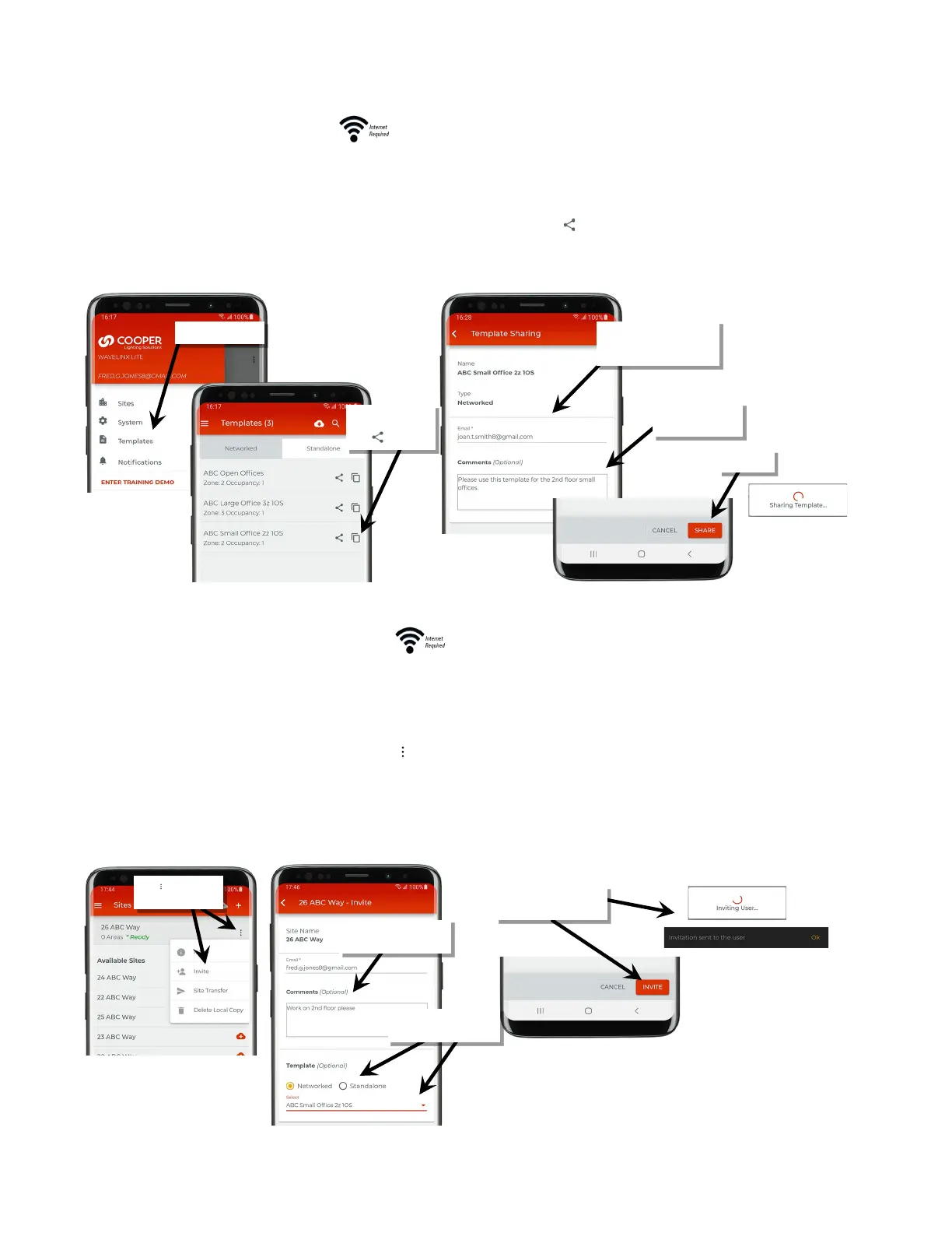 The administrator of a site can share one template when inviting co-commissioners to assist with site commissioning. For more information on
