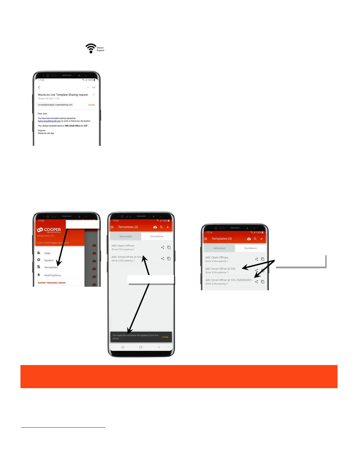1: Ensure that the mobile device being used has an internet connection and that the registered user account that the template has been shared