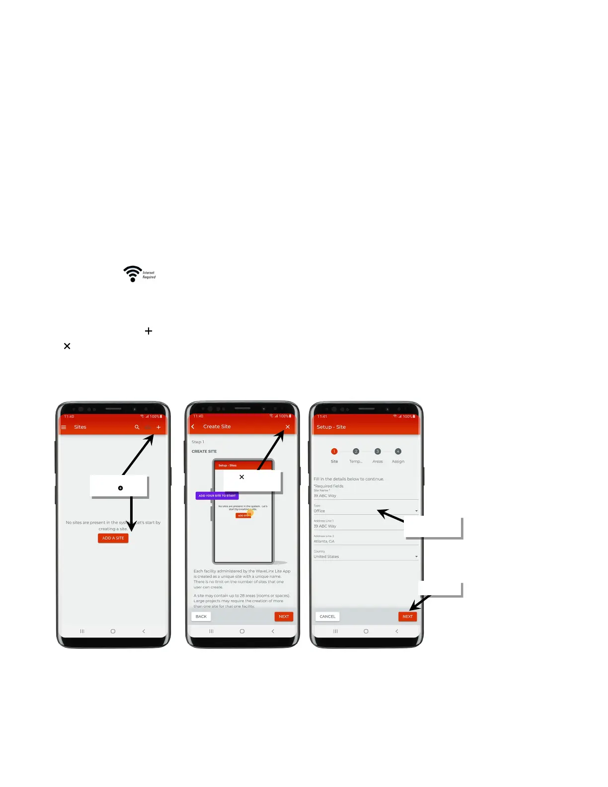 To start a new location’s setup, first create a site for the facility. Each facility administered by the WaveLinx Lite App is created as a unique site.