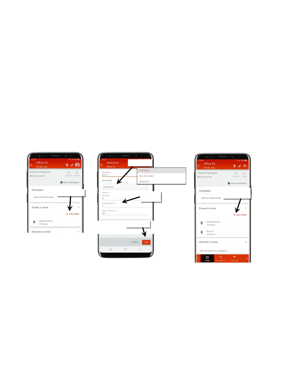 devices in the zone. Unprovisioned devices will be ON to 100% if there is occupancy in the area, allowing for easy identification of